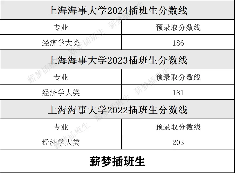 上海海事插班生近三年录取分数线