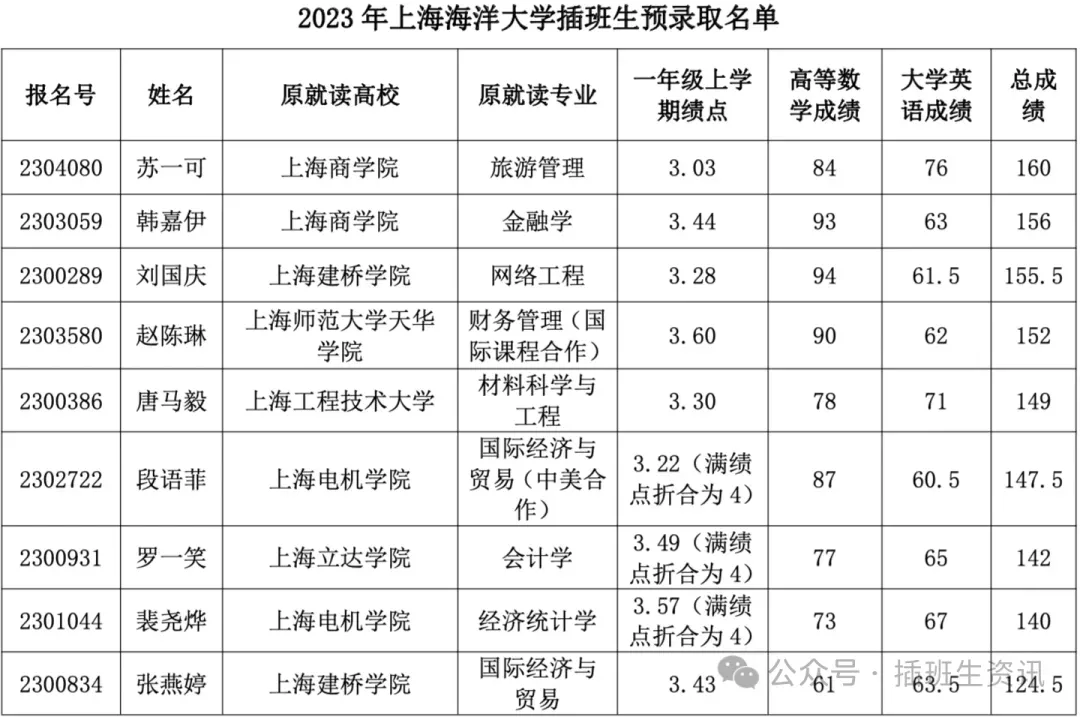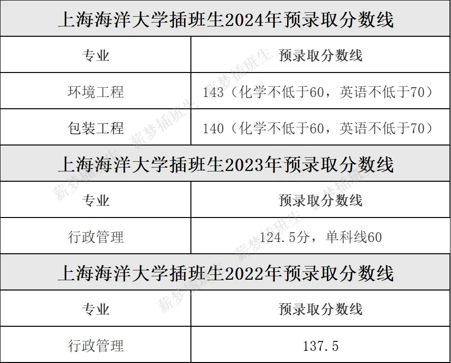 上海海洋大学插班生分数线