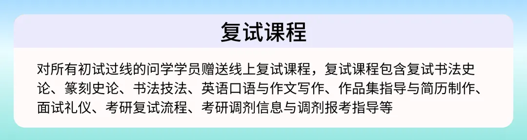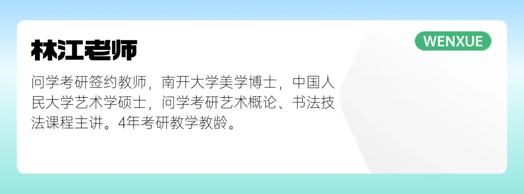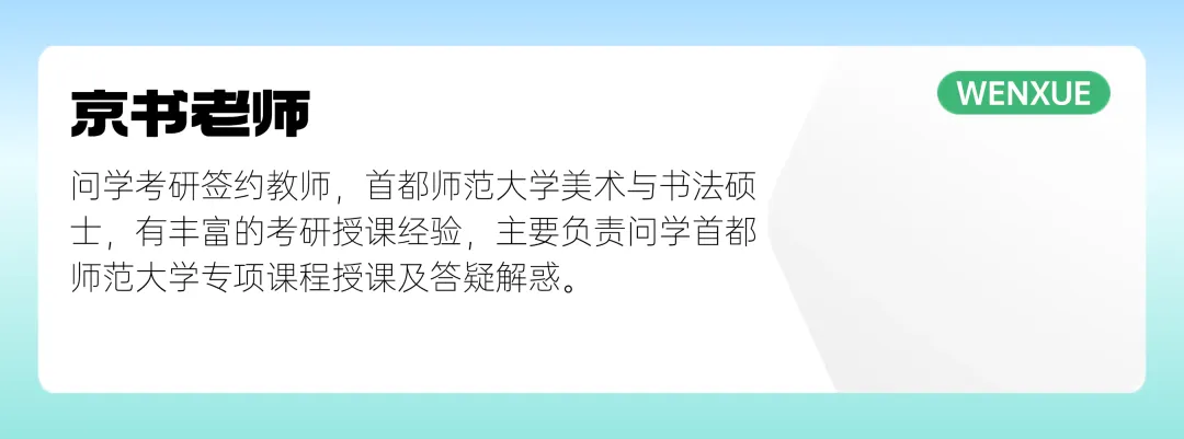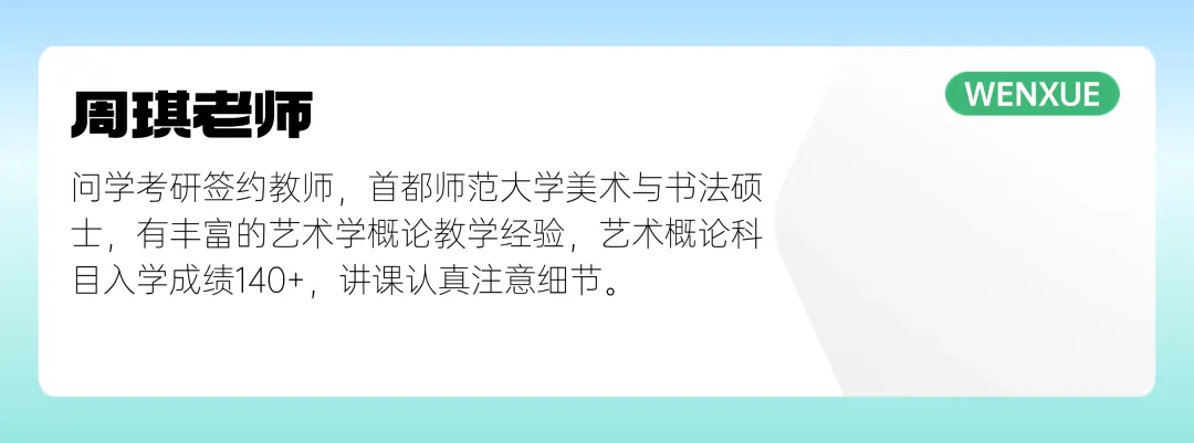 问学考研单科课程面向初复试考察艺术概论、艺术学概论、美术概论、美术史论、书法史论、篆刻史论、书法技法的同学进行授课、模考、讲评。