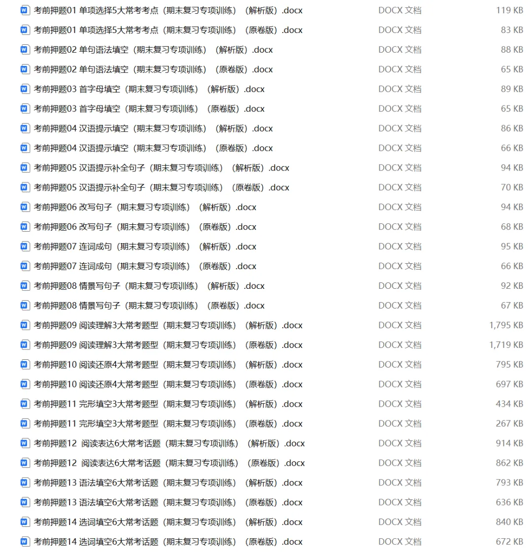 大家好,今天给大家整理了2025-2026学年初中《期末考试专项训练》8年级上册英语专项训练(原卷版+解析版)||高清版word文末免费网盘下载,还有各科各版本材料请关注公众号,陆续更新中。各位学霸安排时间及时学习起来。各位家长或者老师可以下载下来,打印给孩子!2025-2026学年初中《期末考试专项训练》8年级上册英语专项训练(原卷版+解析版)