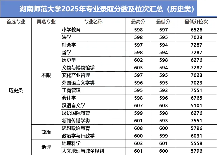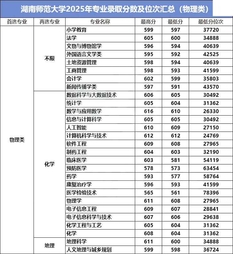 2025年院校专业投档分数线陆续公布中,湖南师范大学2025年专业录取分数已经公布,一起来看看!