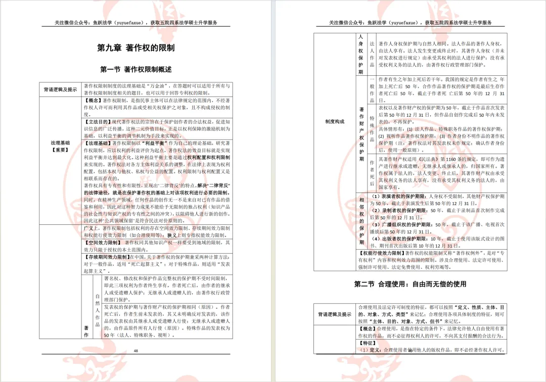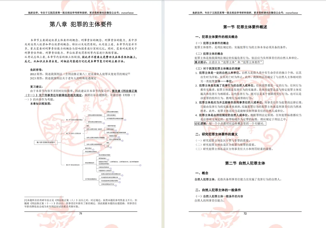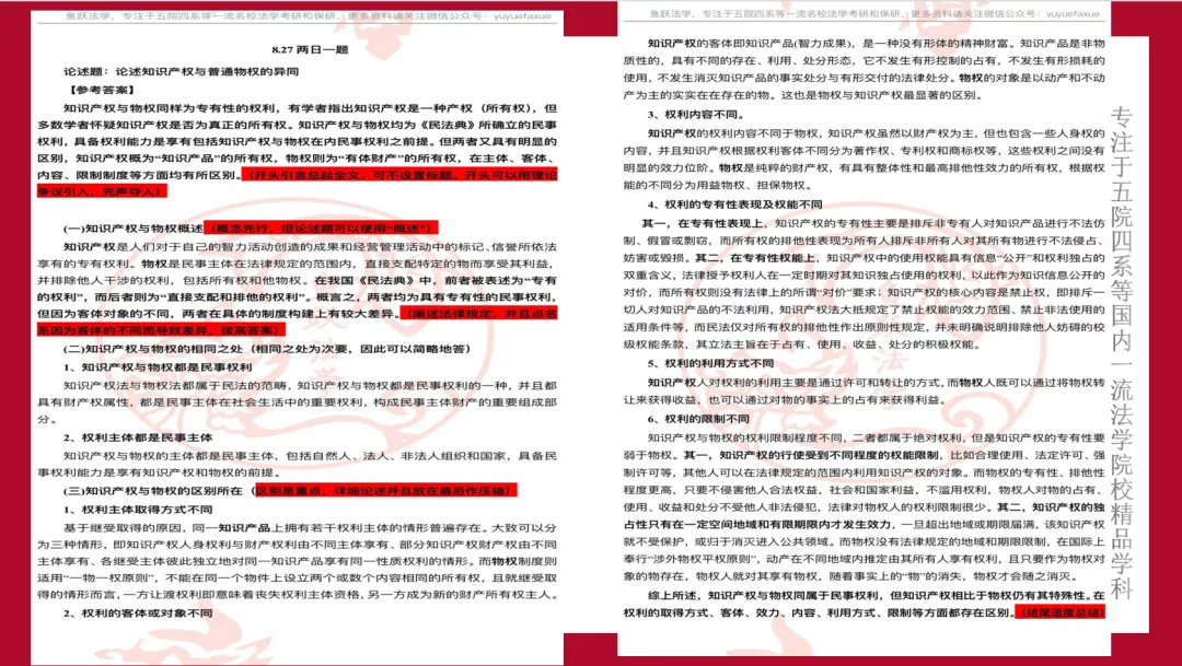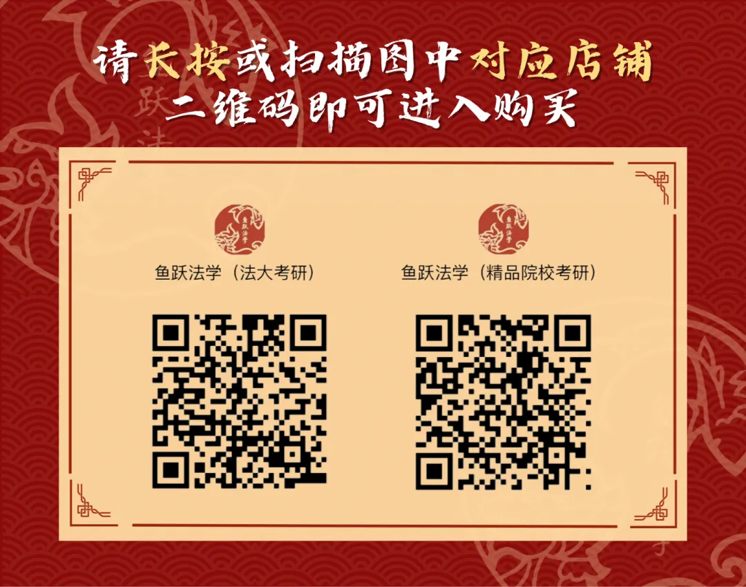 如今,鱼跃法学已经有涵盖中南财、法大、吉大、武大、人大等的五院四系考研产品,提供“优质课程+深度服务+精品资料”全方位考研备考服务。也有了专为五院四系等一流名校法学硕士和法律硕士保研打造的保研产品,包括100余本院校保研核心讲义,定位、面试、论文等的个性化服务,以及私塾班、训练营等的高阶服务,为您提供一站式保研上岸方案。