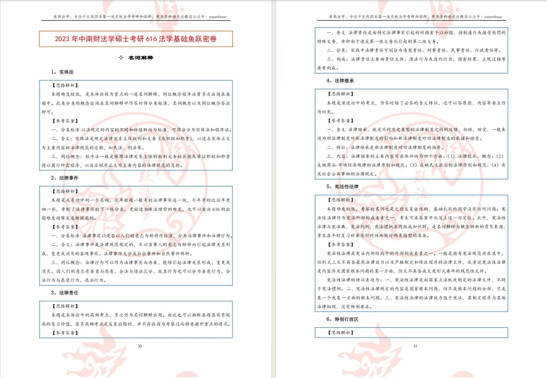 二、27鱼跃中南财法学考研初试系列预览与介绍
