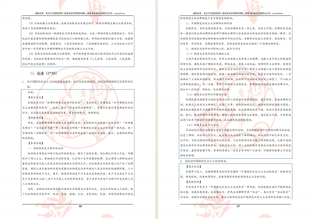 鱼跃法学专注于五院四系等一流法学名校保研及考研,致力于为法科学子提供“升学+学术+求职”三维一体的全方位服务。在创立之初,鱼跃法学便秉持“求同存异,自我赋能”的发展理念,遵循“高精尖、信达雅”的核心战略,以高质、平价、多元的产品为基轴,以专业、活泼、友好的新媒体宣传为纽带,始终致力于为法科学子提供优等的教育服务,已在受众群体间形成了良好口碑,逐渐成为法学圈内如日方升的法学研习团队。