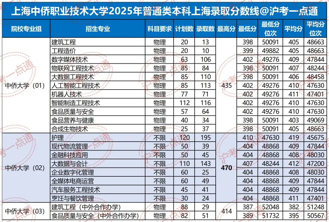 >2025年上海中侨职业技术大学录取分数线