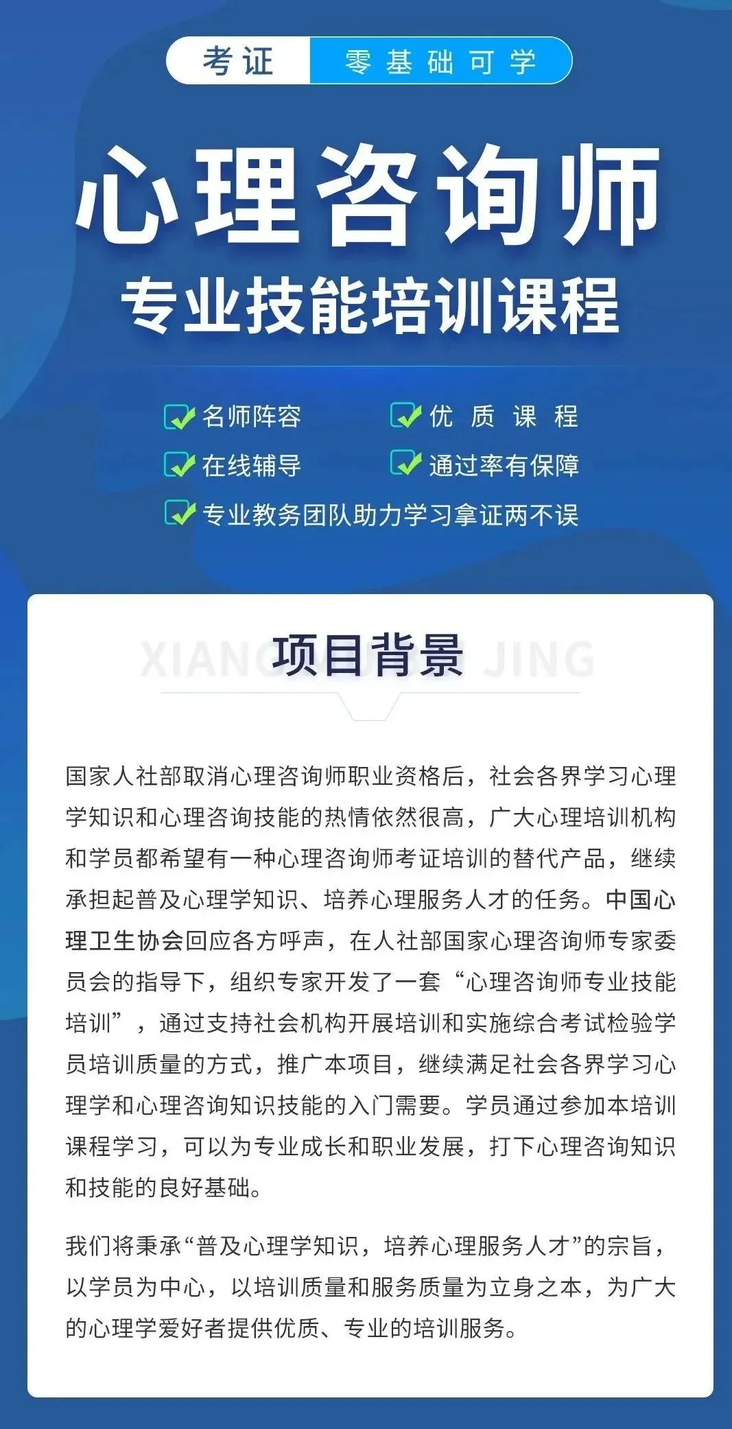 对于心理学的爱好者,通过学习心理学基础知识、考取心理咨询师证书,能够提升自己及身边人的生活品质;对于已经学习过专业的知识的朋友们来说,依然需要证明自己的拥有这份胜任力,才有可能获得就业单位和来访者的信任。