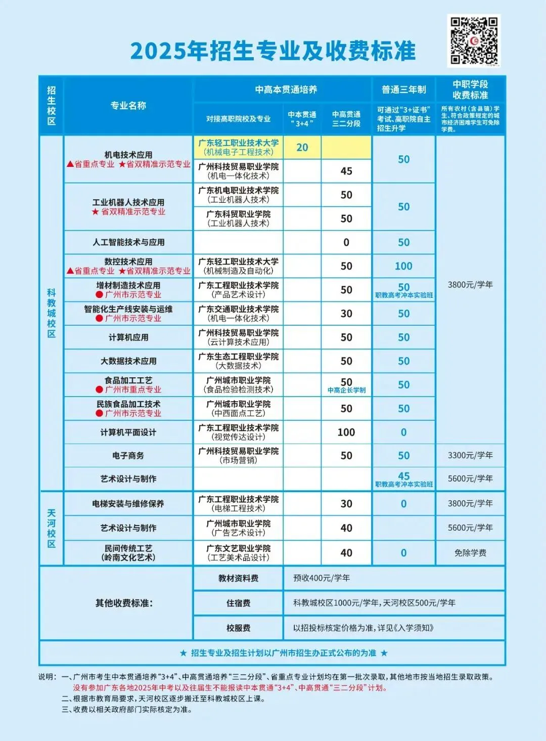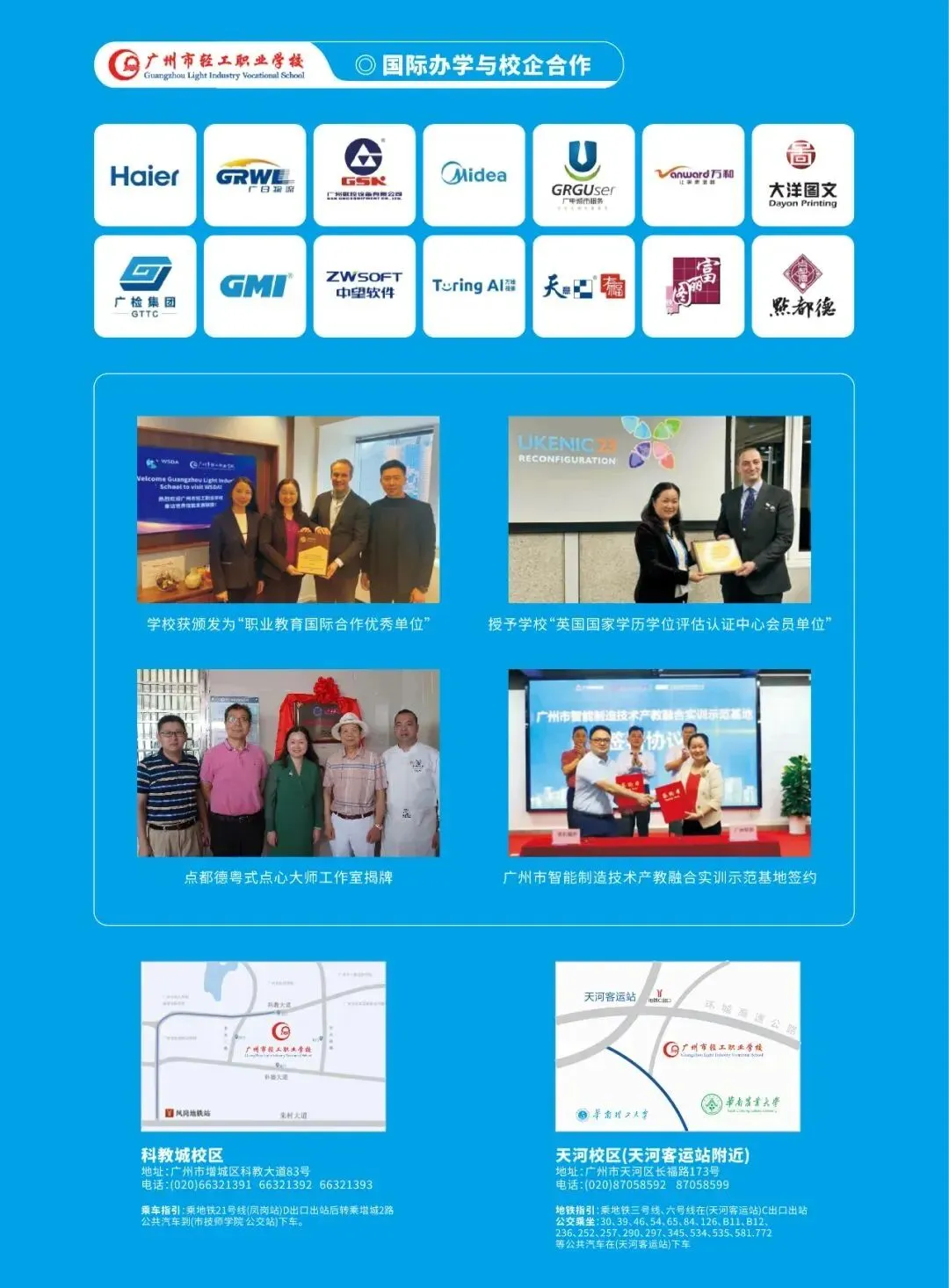 多元途径,升学有优势。学生可通过三二分段、“3+证书”考试、自主招生、现代学徒制等方式升读大专、本科。学校作为首批广东省教育厅五年制“三二分段”中高职贯通培养专业试点学校,与十余所公办高职院校实施中高职贯通人才培养,直接升读对口学院就读全日制公办大专。实施“职教高考英才培养计划”,为学生参加“3+证书”高考提供助力,学生本科、专科文化课上线人数、获证率全市领先。积极探索中职、高职和企业三方合作开展现代学徒制培养,进一步拓宽学生成长、成才通道。与新西兰北方理工等大学建立合作,学生可以选择到国外高等院校留学深造。