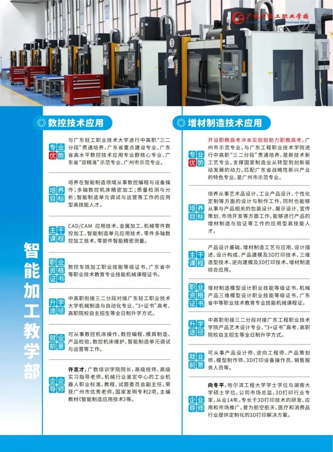 师资队伍实力雄厚。拥有南粤优秀教师、省中职名师工作室主持人、市中职名师工作室主持人、省市级教师教学创新团队、最美广东中职班主任、市名班主任工作室主持人、市级名班主任、市骨干班主任、市十佳班主任、拥有全国技术能手、全国职业院校技能大赛优秀指导教师以及市高层次人才等名师队伍。
