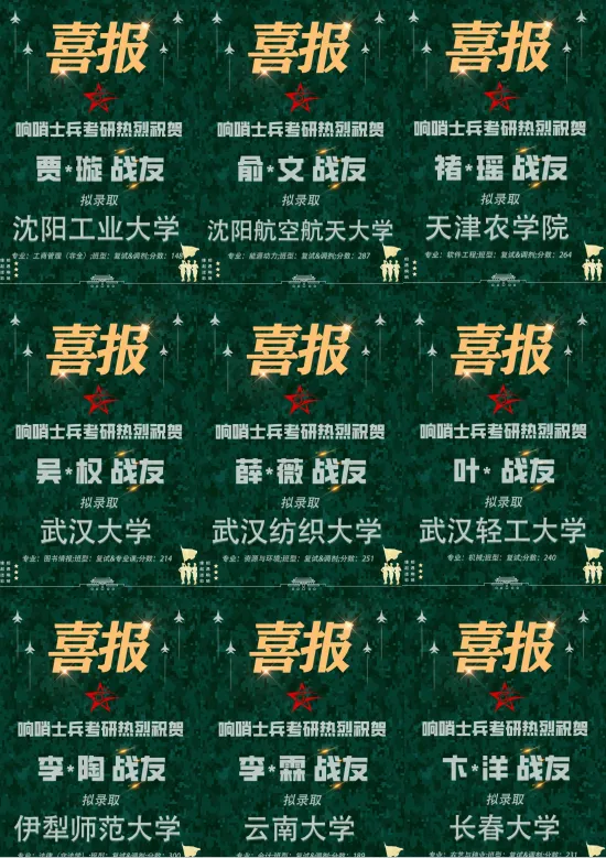 ▷ 7、班主任老师代表士兵计划考研上岸,现从事班主任辅导。