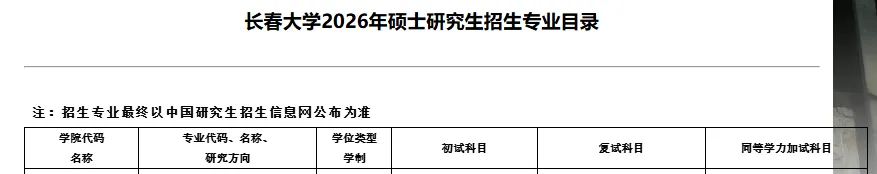 4.考试科目和考试方式详见长春大学2026年硕士研究生招生专业目录(以“研招网”公布为准)。