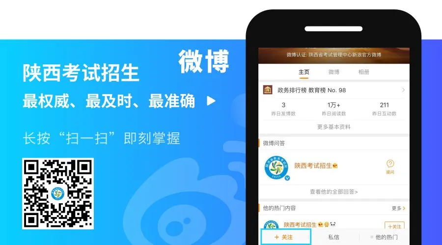 每年志愿填报和高考录取期间,针对考生的各种诈骗行为层出不穷。省教育考试院再次提醒广大考生:(1)陕西省教育考试院门户网站、陕西招生考试信息网、“陕西考试招生”微信公众号和“陕西考试招生”微博是陕西省教育考试院的官方信息发布平台。高考期间,所有政策文件、招生计划、志愿填报、招生录取等信息均在以上平台查询,请考生和家长们认准官方信息,谨防上当受骗。(2)凡通过陕西省教育考试院门户网站或陕西招生考试信息网填报的志愿,均被视为考生本人提交。请考生们一定提高防范意识,妥善保管个人登录账号、密码等信息,不要委托他人进行网上信息查询或信息登记操作,严防个人信息被他人盗用或非法操控。
