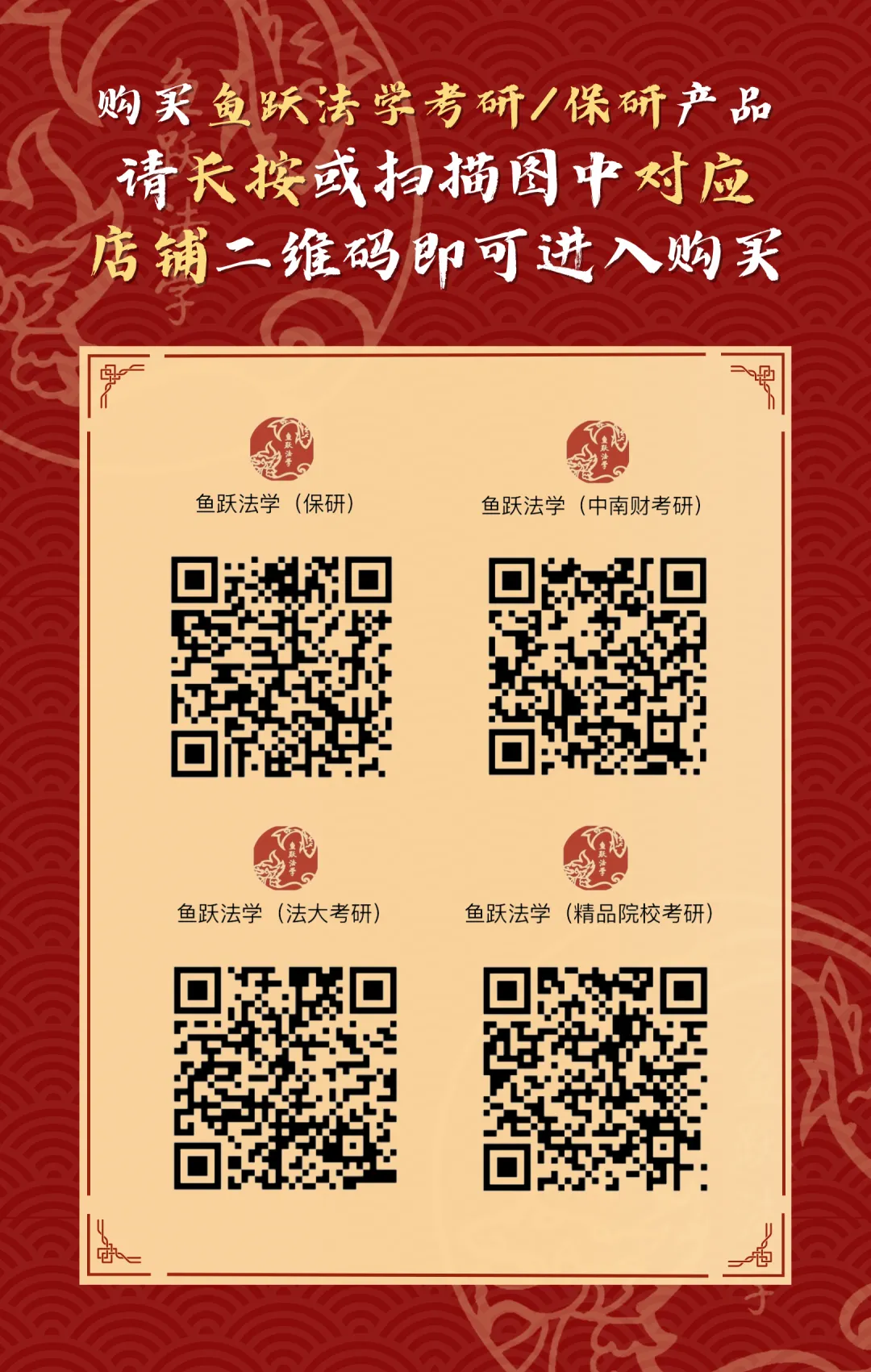 鱼跃法大考研复试系列产品现已开启预售,如需了解优惠请点击复试资料包优惠来袭丨法大考研复试系列产品预售(附私塾退费政策)或咨询八爪鱼师兄。更多复试经验会在交流群中分享,如需加群请添加八爪鱼并发送“交流群+本科院校+报考专业”,鱼鱼看到会第一时间拉你进群!
