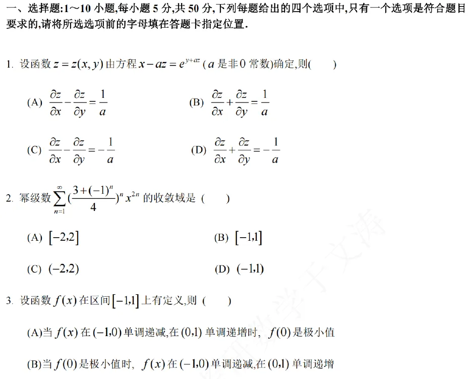 考研数学真题及答案