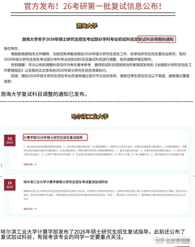 各位考生请注意,2026年考研复试工作已悄然拉开帷幕,多所院校的第一批复试相关信息已正式公布。切勿等待初试成绩公布后再筹备复试,提前启动备考的考生已在竞争中占据先发优势。