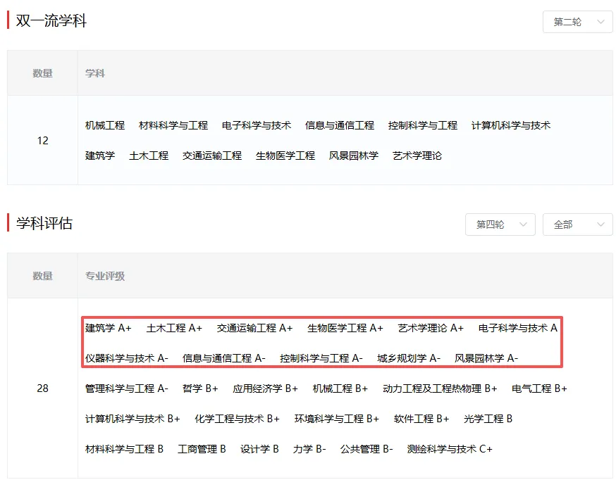 学校11个学科入选国家“双一流”建设学科名单、5个学科在第四轮学科评估中获得A+,两者均列全国第八位;13个学科进入ESI世界前百分之一,其中工程学列15位,进入ESI世界前万分之一,计算机科学列11位,进入ESI世界前千分之一。学校共有3个国家重点实验室,4个国家工程研究中心,2个国家工程技术研究中心,1个国际合作联合实验室,1个国家专业实验室,11个教育部重点实验室,6个教育部工程研究中心,33个博士后科研流动站,以及2个国家级文科智库、2个江苏省重点高端智库。