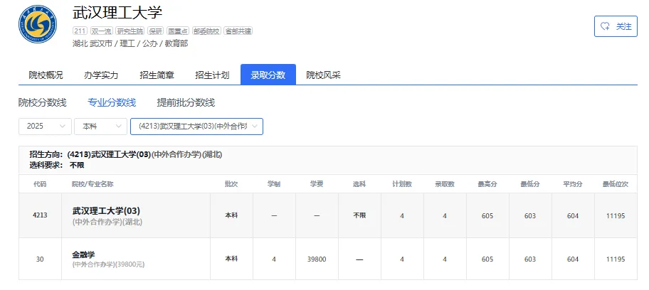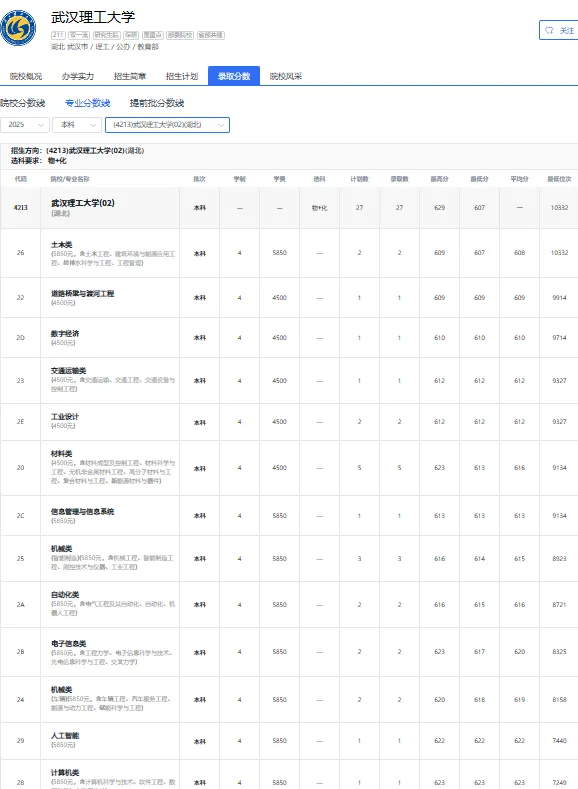 2025年|中国地质大学(武汉)在京最低录取分数线及位次排名