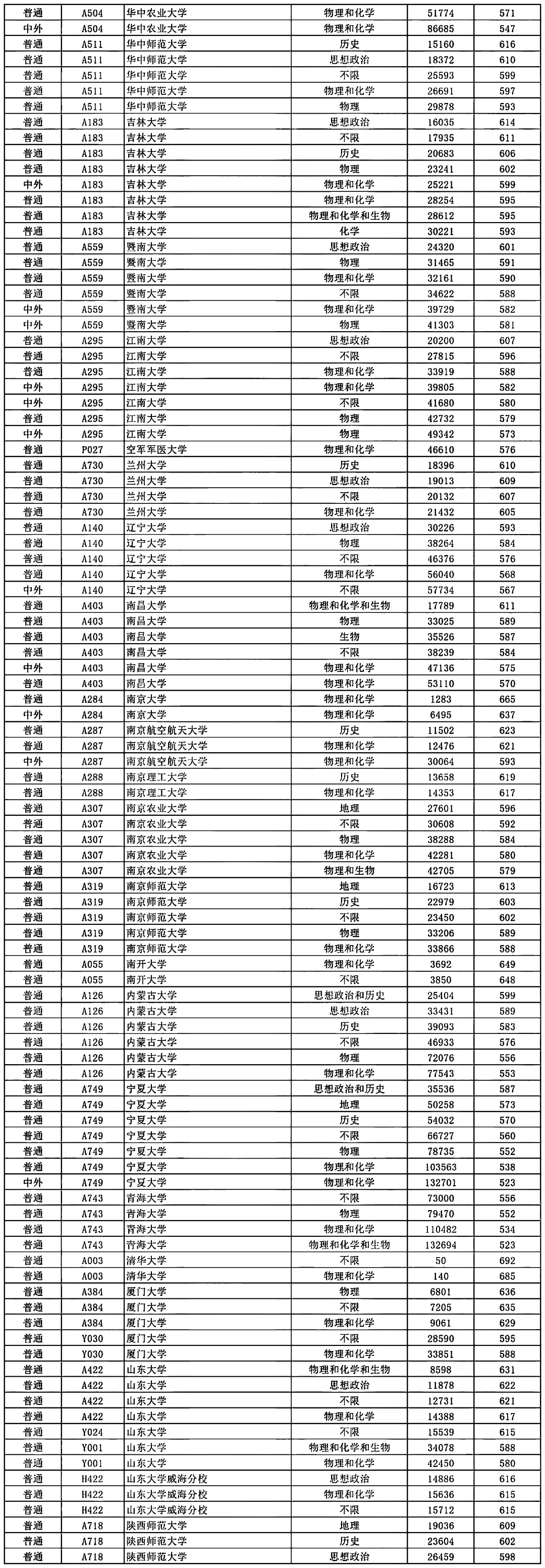 (说明:山东大学普通计划包含Y001非西藏生源定向西藏就业和Y024文物全科人才)