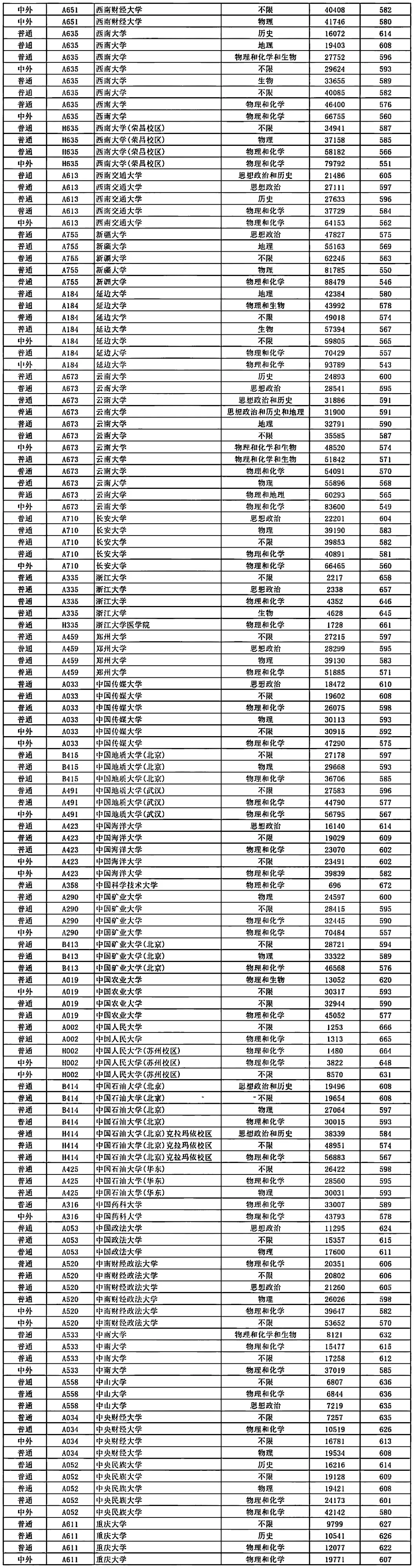 定藏生和中外合作分数相对较低,山东大学定藏生最低分数为580分,北京交通大学(威海校区)中外合作最低分为572分。
