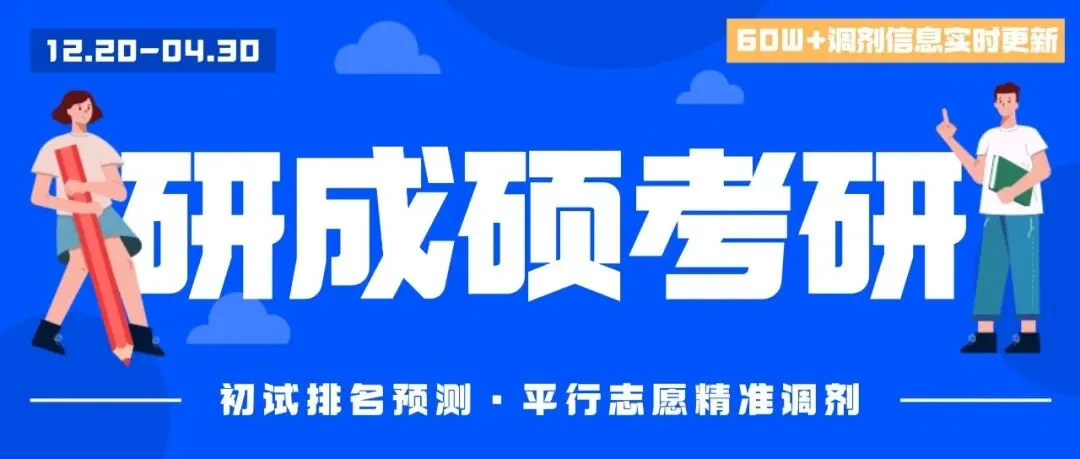 26考研的同学,推荐【研成硕】复试调剂小程序,可以生成专属个人的调剂报告、查考研初试排名,一志愿分析,往年调剂数据,调剂同分去向&同校去向,调剂捡漏专业,最新调剂公告,根据你的一志愿情况,为你推荐往届学长姐调剂录取的院校!