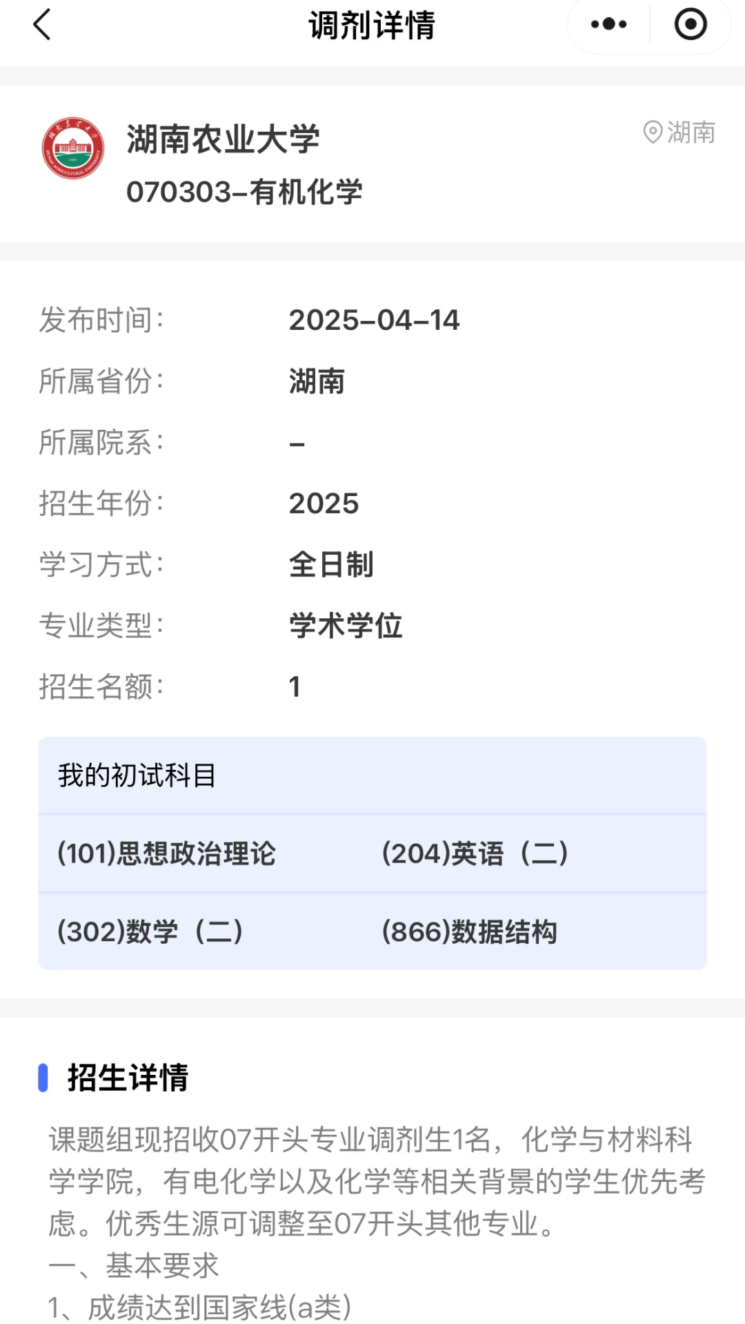 原因:专硕招生规模大,应用导向强。调剂阶段会优先考虑有农场、种业公司实践经验的考生,且对跨考至农学的生物、化学专业考生友好,申请者匹配度高。