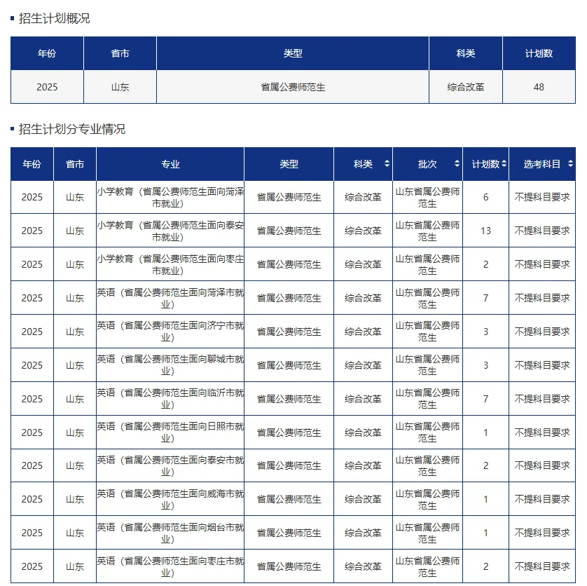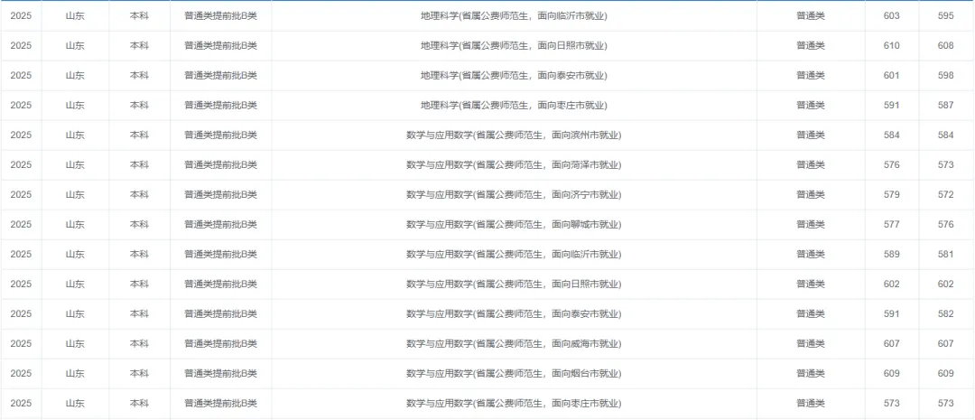 2025年省属公费师范生培养院校:山东师范大学、曲阜师范大学、济南大学、青岛大学、聊城大学、鲁东大学、临沂大学。