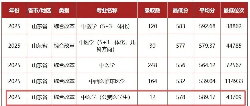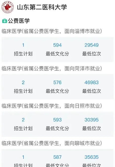 2025年公费医学生培养院校:山东中医药大学、山东第一医科大学、山东第二医科大学、滨州医学院、济宁医学院。