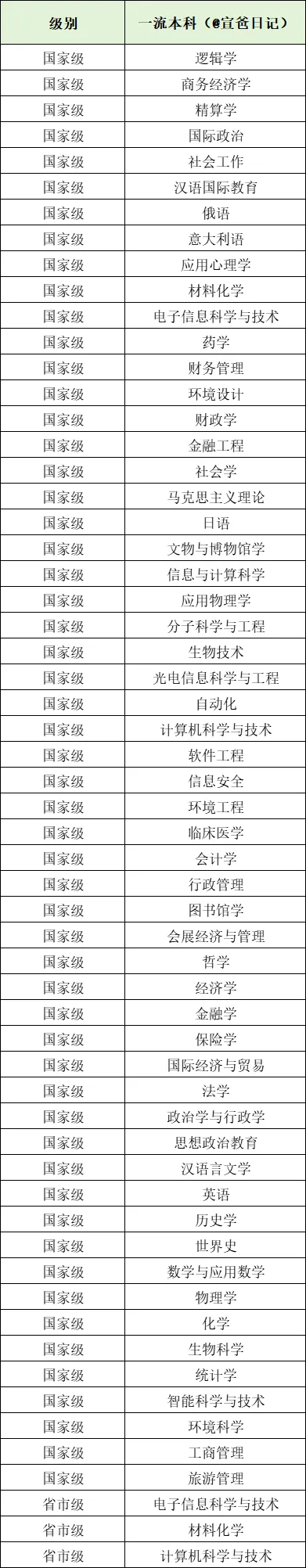 一流本科专业: