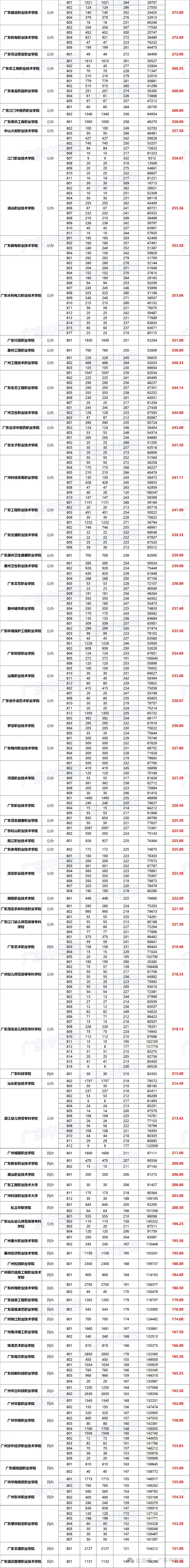 广东省2023年普通高校春季分类考试(“3+专业技能课程证书”)招生录取最低分数线如下: