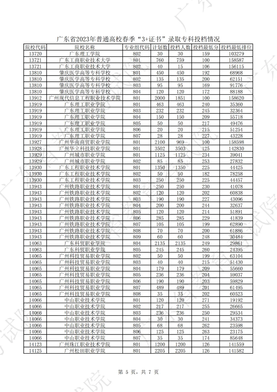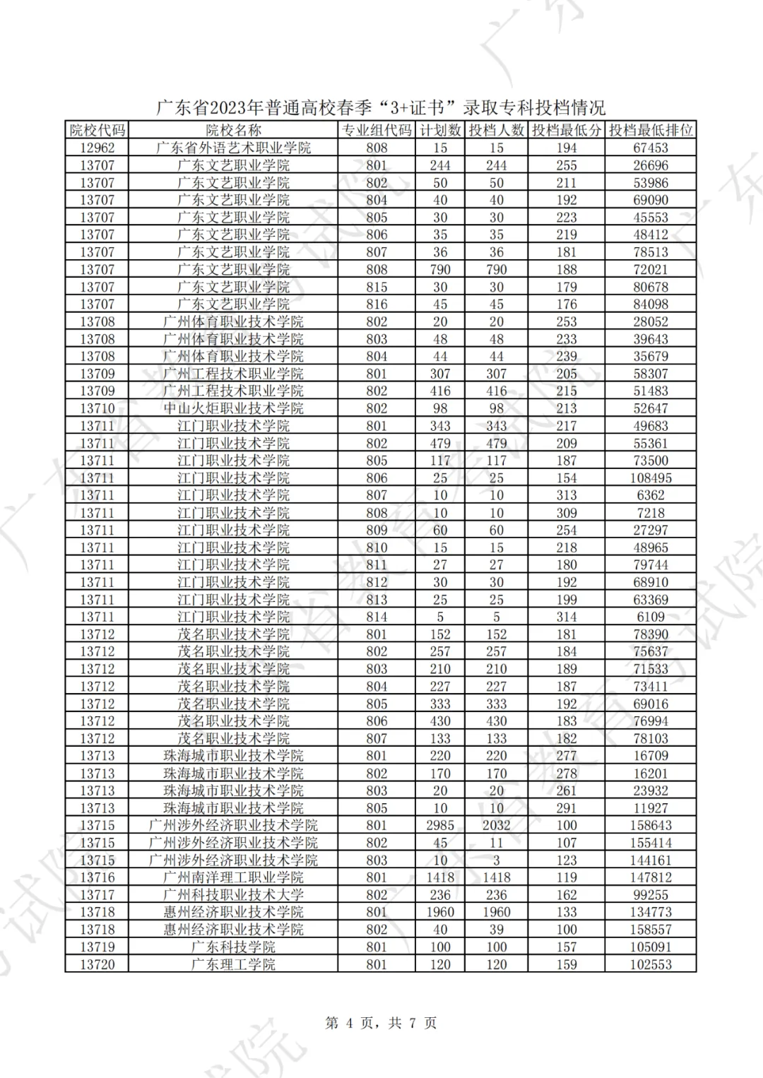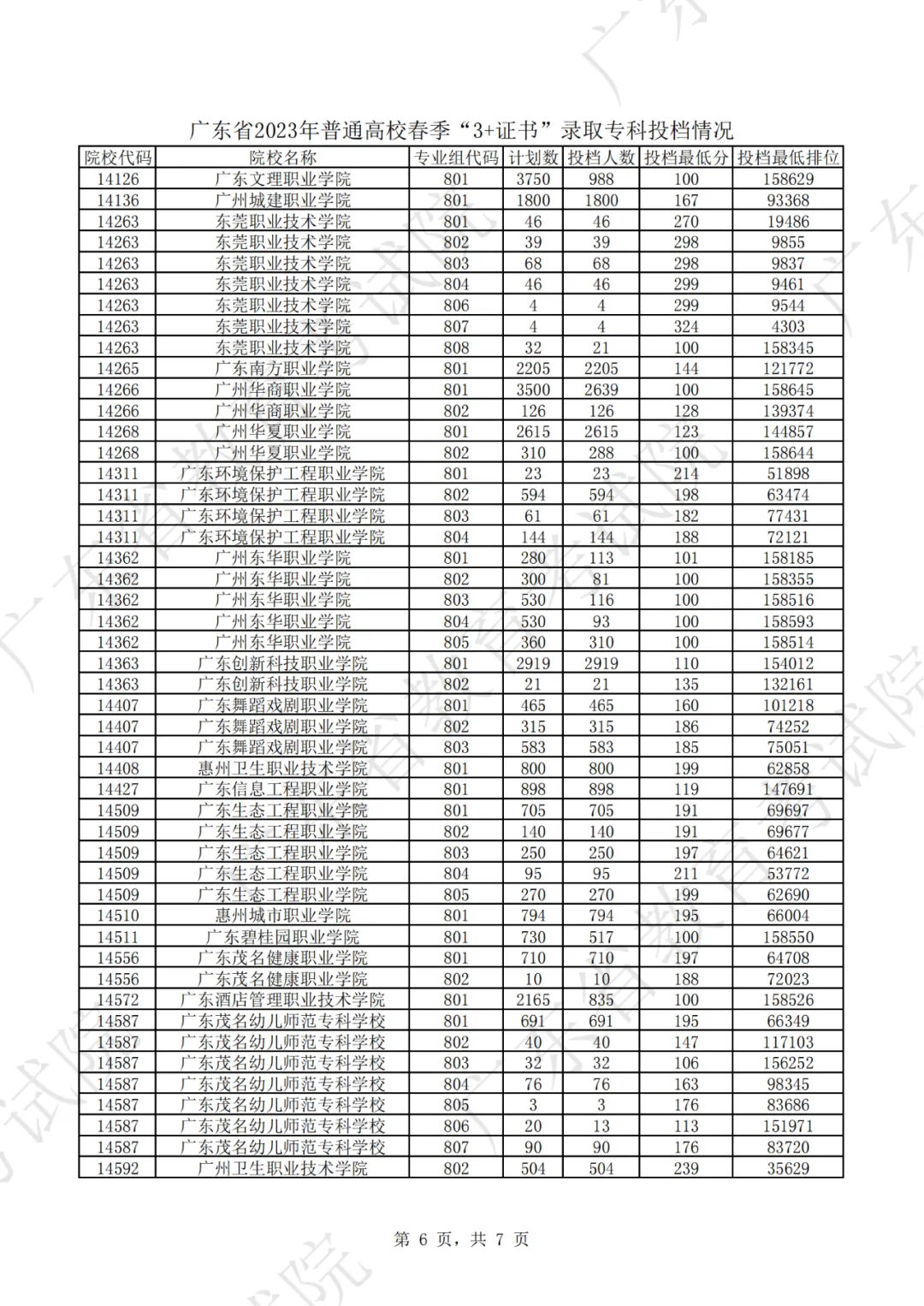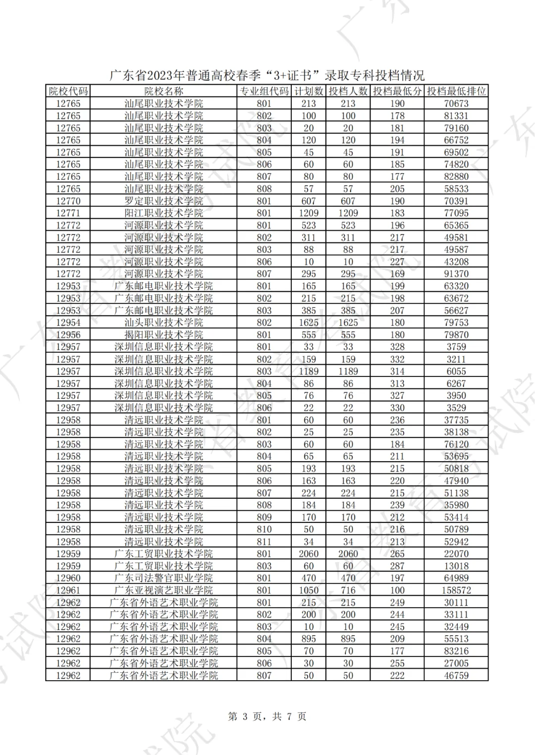 2023年“3+证书”录取专科投档情况!