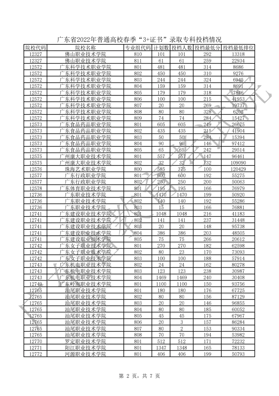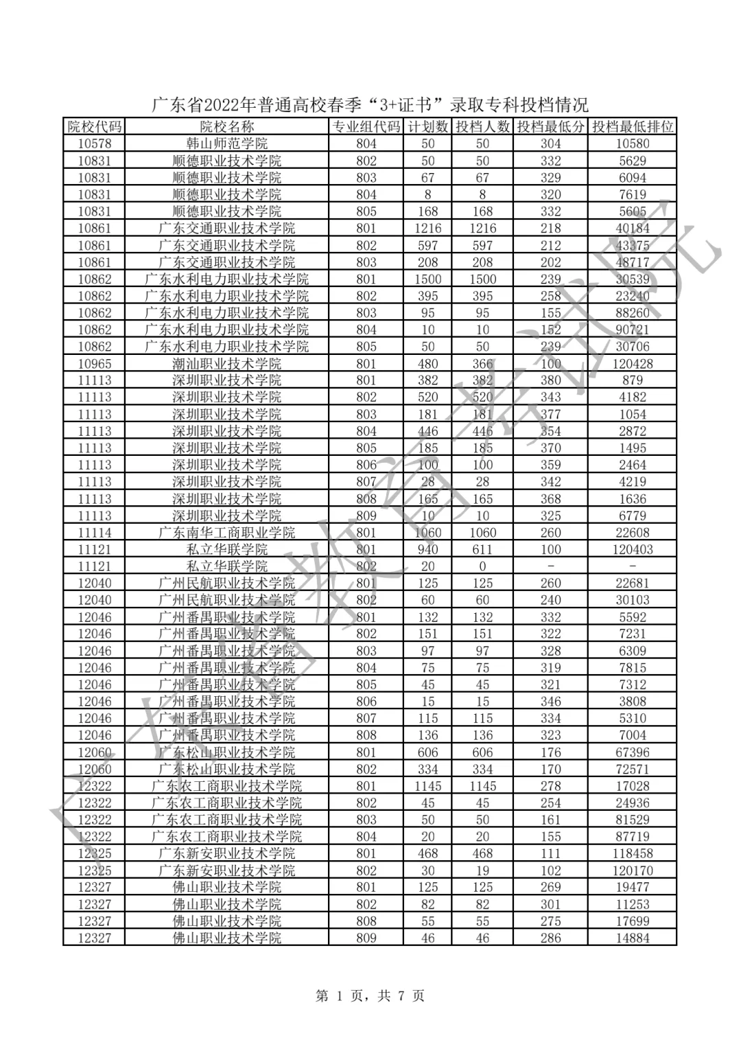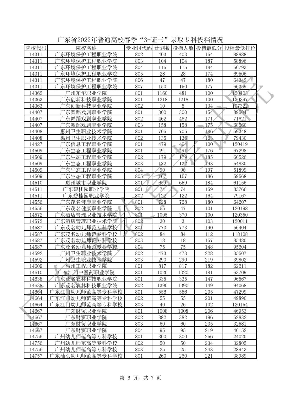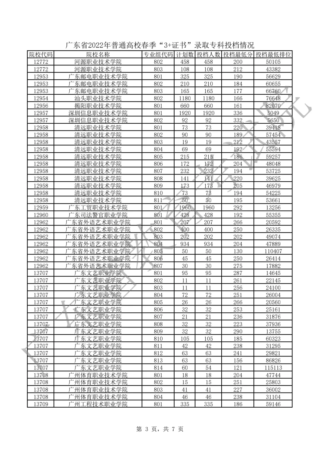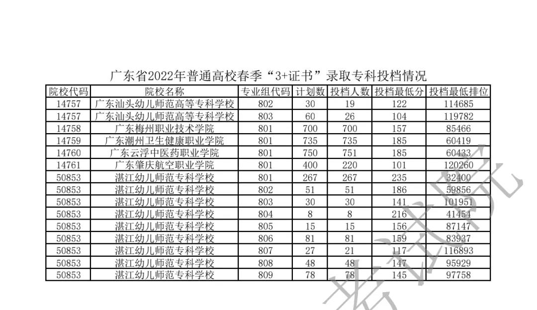 2022年“3+证书”录取专科投档情况!