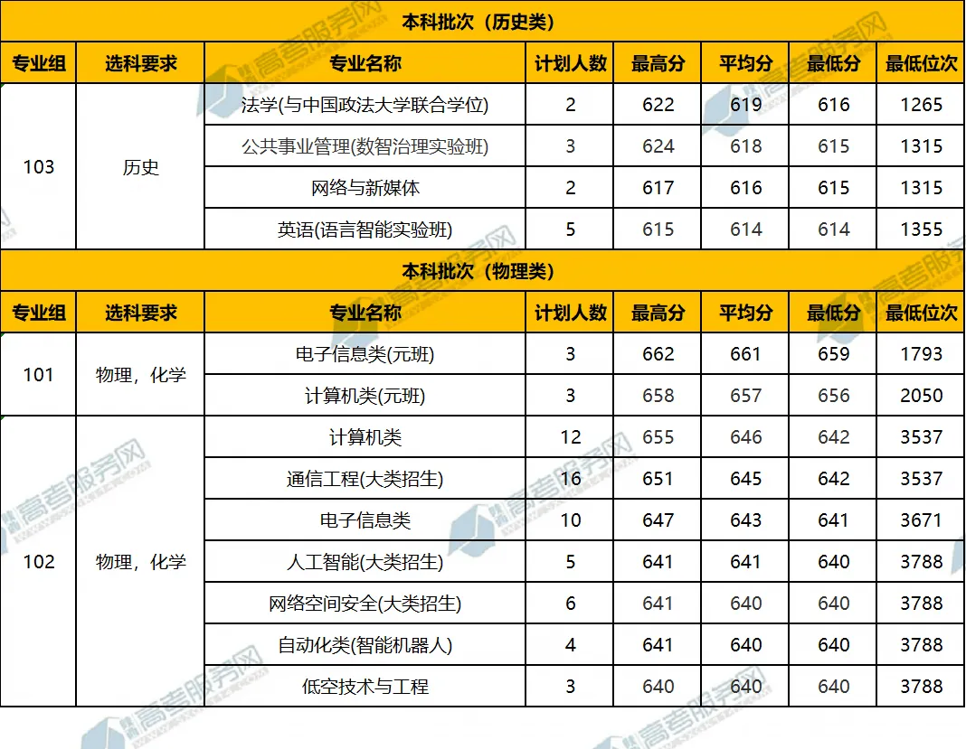 北京邮电大学2025年各批次的专业录取分数线如下: