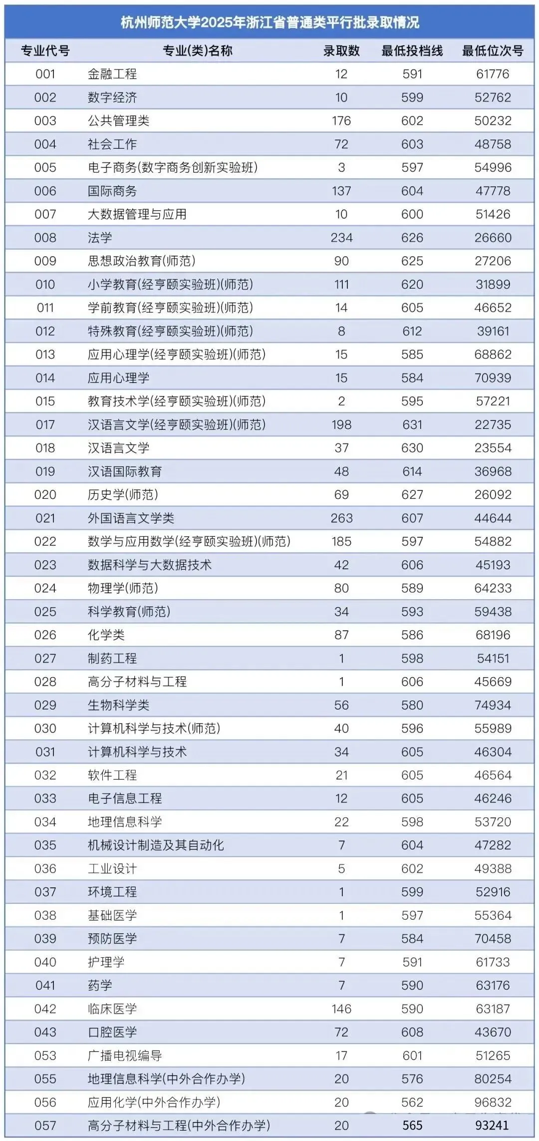 >杭州师范大学2025年浙江省各类别录取分数线汇总