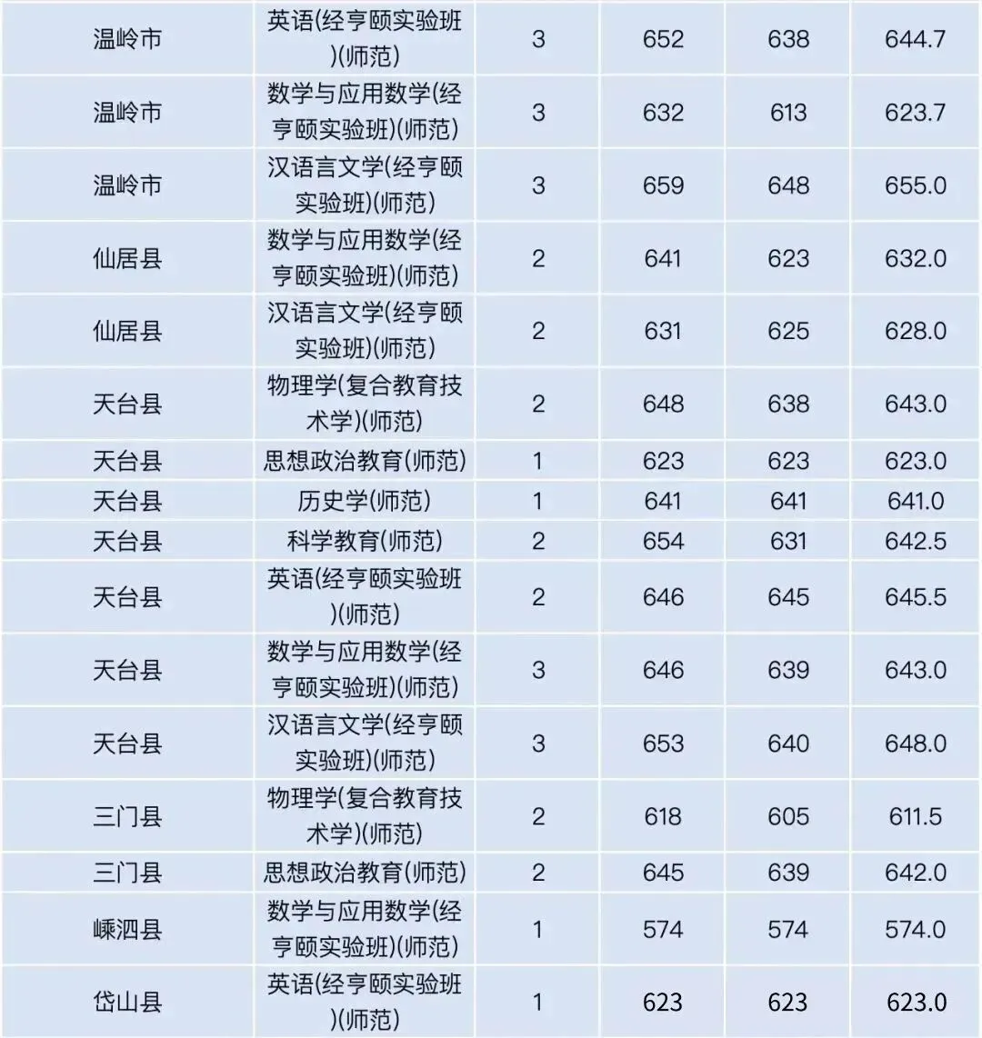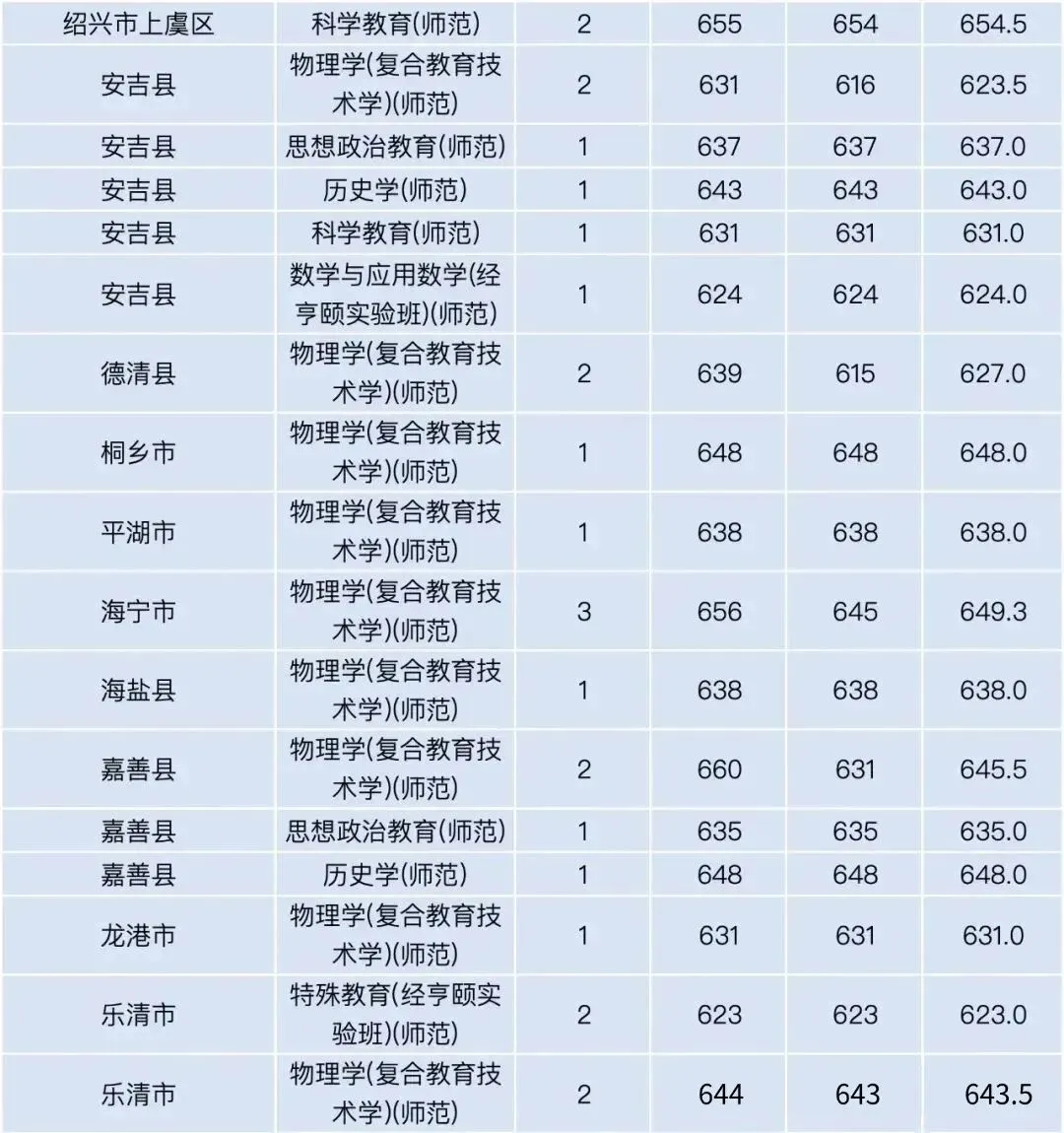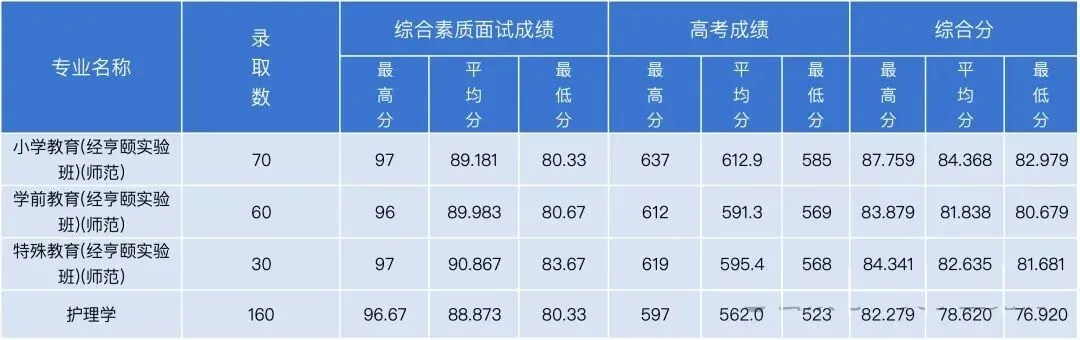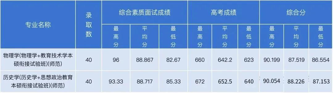 杭州师范大学2025年三位一体录取情况: