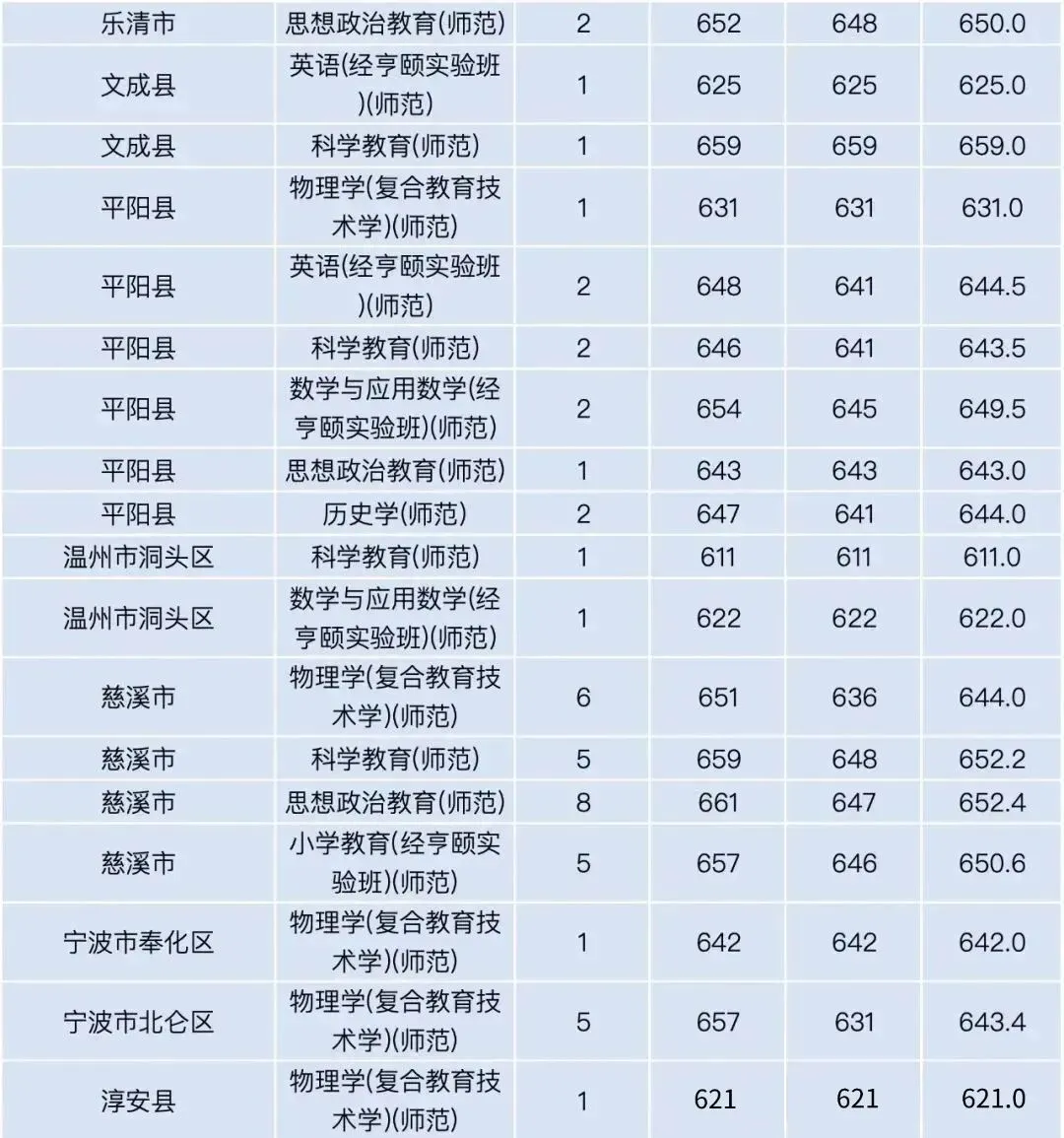 东华大学近三年在浙江省录取分数线汇总