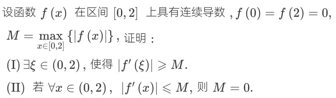 还是被称为考试大纲改之前历年真题中最难的中值定理证明题的2020年的数一数三的中值定理证明题(第一问拉格朗日倒是不难,难点在于对第二问M=0的处理方式);
