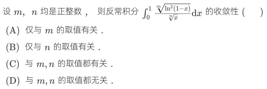 是2010年选择题利用mn均为正整数判定抽象反常积分的敛散性是不是与mn有关系,让当年的考生被“初见杀”,听取哀嚎一片;