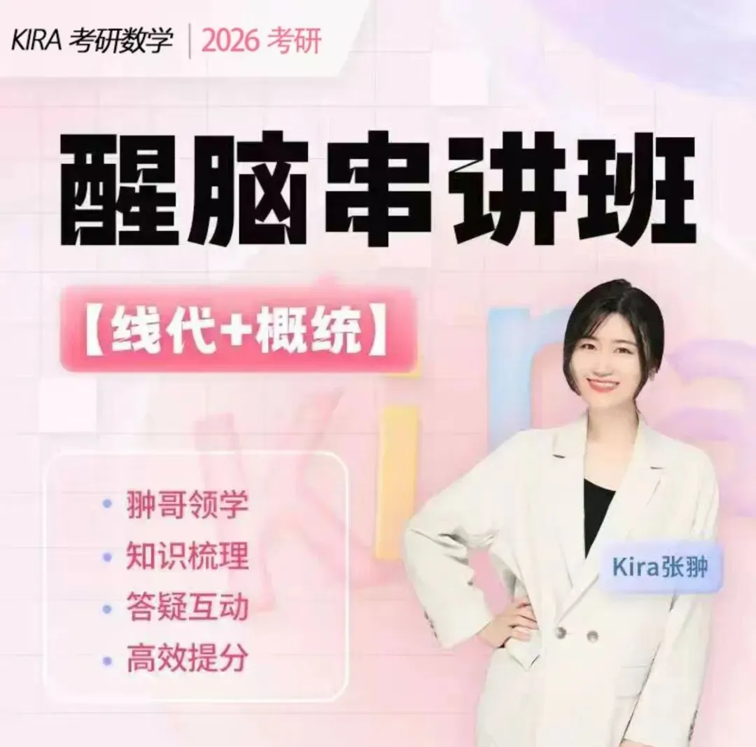 27考研的同学们,如果你们在寻找能协助攀登高山的“登山杖”,能平稳渡过长河的“摆渡船”的话,Kira老师27考研数学课程就是为此而来。从基础夯实到进阶突破,从能带你避开复习弯路,让每一份努力都能转化为看得见的分数。