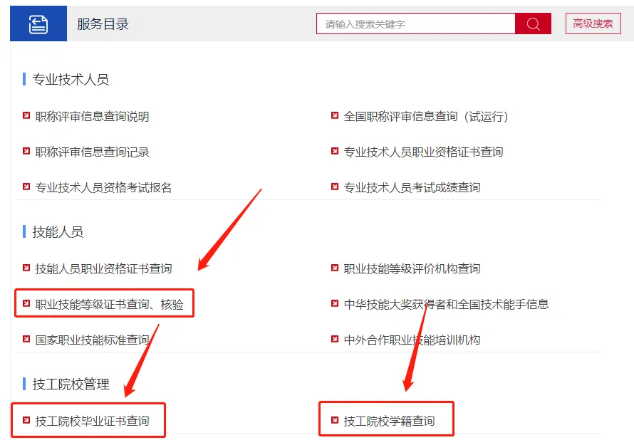 全国人大修订通过了《职业教育法》(以下简称《职教法》),明确了职业教育与普通教育具有同等地位,着力提升职业教育的认可度,强调深化产教融合、校企合作,完善职业教育的保障制度和措施,对于我国职业教育发展,必将起到重要的促进和保障作用。我们注意到,在新修订的《职教法》中,技工教育的地位和作用得到进一步彰显,在第十条、第十五条多次出现了“技工教育”“技工学校”和“技师学院”,明确要“大力发展技工教育”。如此清晰地将技工教育写进法律,在历史上还是第一次,也构成新《职教法》的一道亮丽风景。人社部印发 《关于职业院校毕业生参加事业单位公开招聘有关问题的通知》(以下简称《通知》),部署职业院校(含技工院校)毕业生参加事业单位公开招聘工作。《通知》提出, 事业单位公开招聘中有职业技能等级要求的岗位,可以适当降低学历要求,或者不再设置学历要求。《通知》要求,事业单位公开招聘要树立正确的选人用人理念,破除唯名校、唯学历的用人导向,切实维护、保障职业院校(含技工院校)毕业生参加事业单位公开招聘的合法权益和平等竞争机会。与此同时,技能型人才在兵员征集中比例也不断扩大。国家出台相关文件明确指出:认真抓好高级技工学校和技师学院毕业生征集,为部队输送操作能手、“工匠”人才。今年的征兵工作,取得高级工及以上技能等级(职业资格)的高级技工学校或技师学院全日制毕业生,等同大学毕业生优先批准入伍。旧系统“全国技工院校电子注册和统计信息管理系统”已停用,人社部2017年起启用的全国技工院校毕业证书查询系统(网址http://www.jxzs.mohrss.gov.cn/)也一并停用。经了解,随着新系统“全国技工院校信息管理系统”的启动,人社部已启用新的查询系统网址。1、网址:http://rsrc.mohrss.gov.cn/jxxxcx/Omp.do?method=fwdPageJgyxStuInfoEntry2、中华人民共和国人力资源和社会保障部--服务之窗--查询--信息查询--输入学生身份证号就能查询打印学生学籍信息。3、全国人社政务服务平台查询,http://www.12333.gov.cn/portal/index1、全国技工院校毕业证书查询系统(可查2015年6月以后入学毕业生)网址:http://rsrc.mohrss.gov.cn/jxxxcx/Omp.do?method=fwdPageJgyxCertInfoEntry职业资格和技能等级证书查询网址:http://zscx.osta.org.cn/