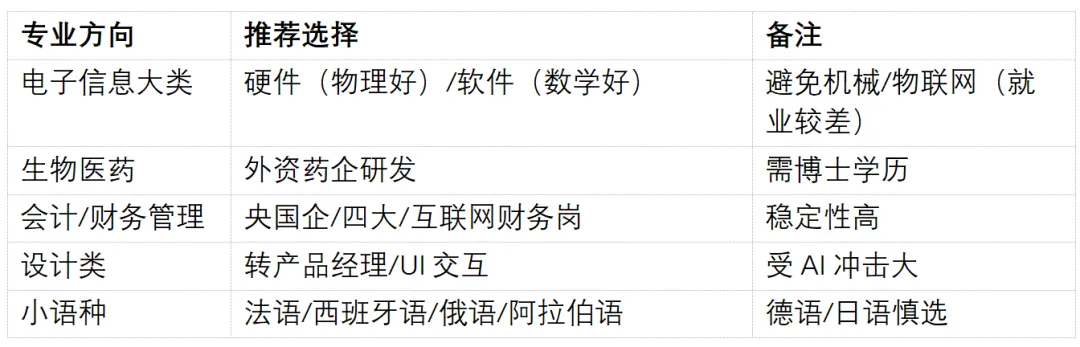 (三)热门专业(如电子信息)需匹配学生能力,数理弱者慎选。