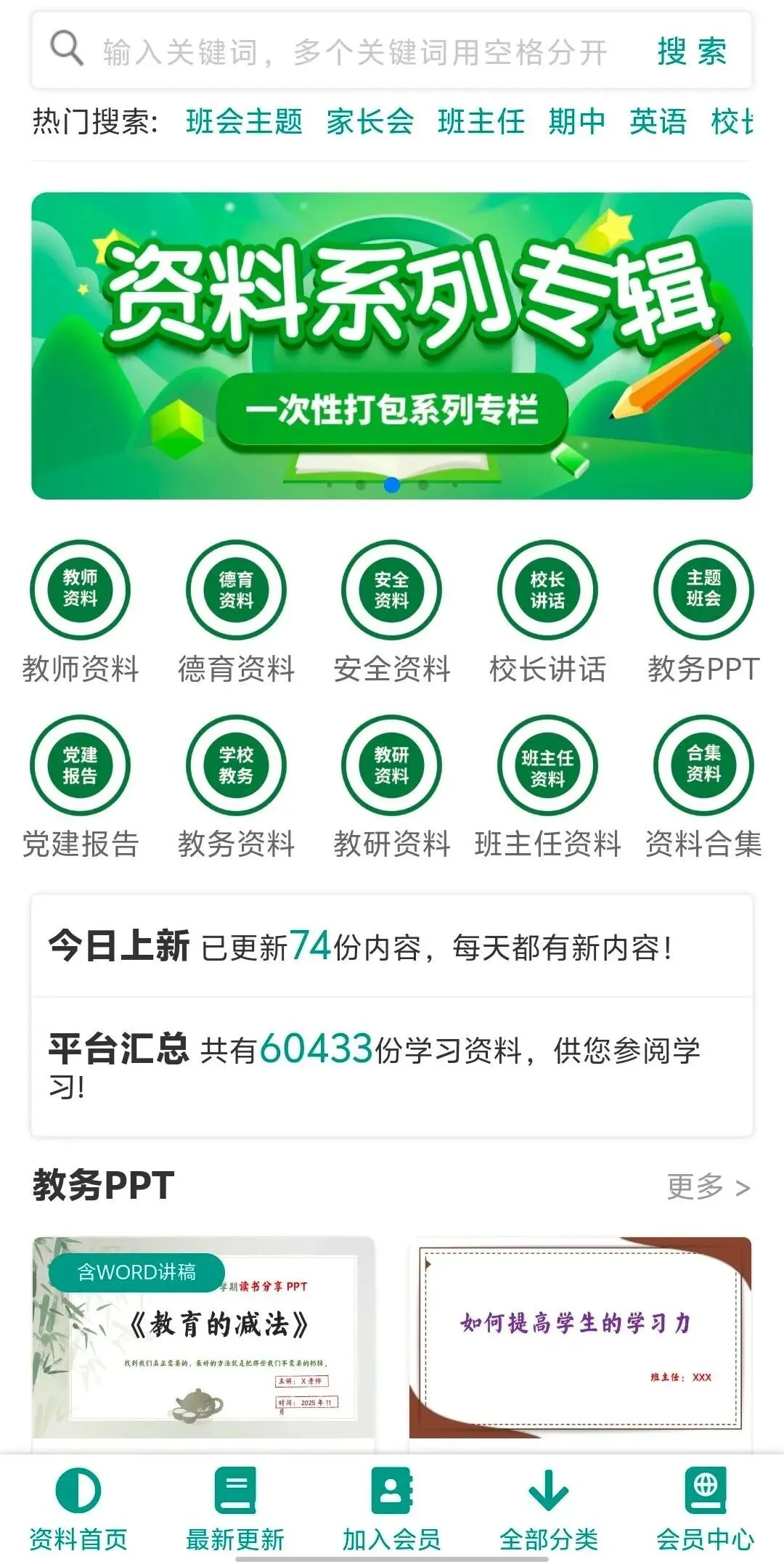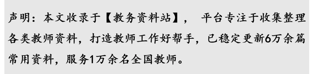 本平台专注于教师资料,打造教师工作好帮手,已更新大量教师工作资料,包括各类文稿以及教学、班会PPT等材料,请关注后在后台获取平台入口