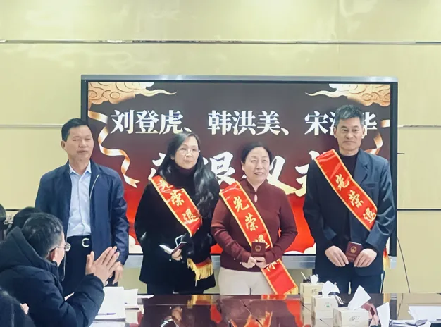 工会代表现场宣读了《致荣退职工的感谢信》。信中文辞恳切,字里行间流淌着对老同志们数十年来立足岗位、默默奉献、倾心育人的敬佩之情。与会人员深情发言,回忆与三位老师共事的点滴往事,表达不舍之情与美好祝愿。刘登虎、韩洪美、宋淑华三位荣退同志也依次发表了退休感言。