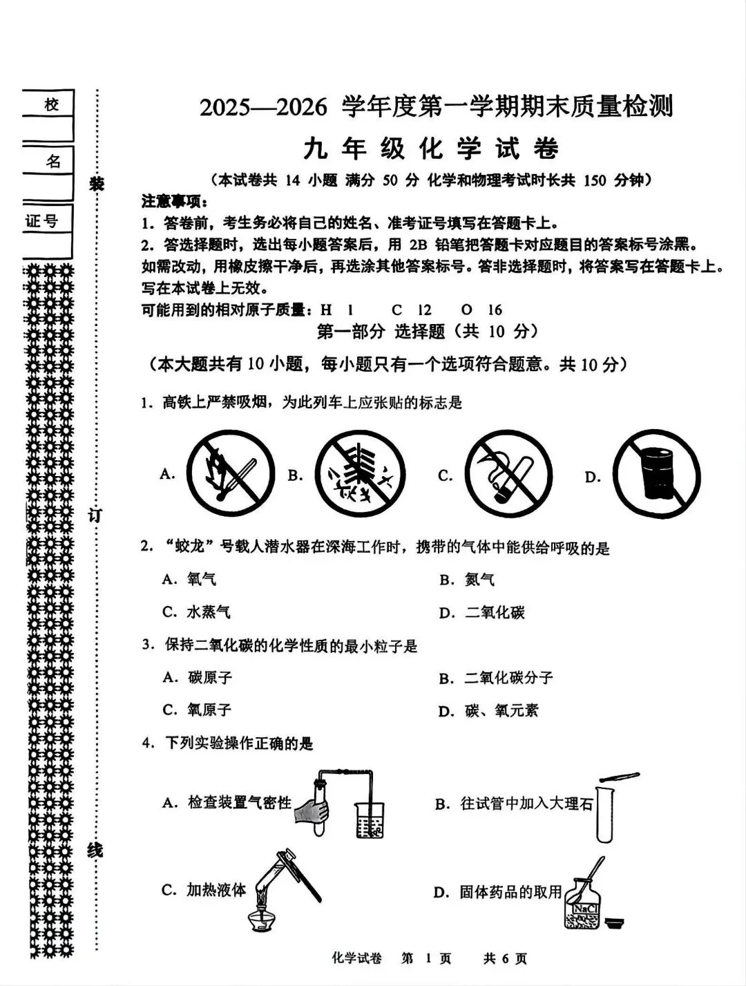 当前位置:首页>研招网>25秋九年级上册化学人教版《期末考试卷带答案》|完整高清电子版可打印
