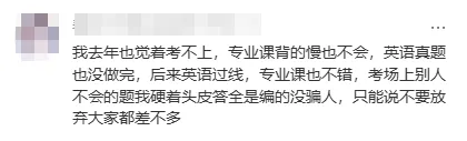 还有人去年考前专业课背得慢、英语真题没做完,考场上遇到不会的题硬着头皮编完,最后英语过线、专业课发挥出色,顺利上岸。