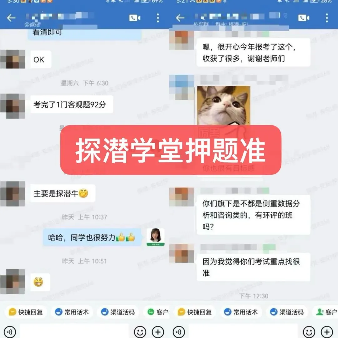 参加完考试的同学们纷纷反馈:探潜学堂押题准,跟着我们的课程学习,备考很高效!得到这些反馈,我们的老师们都非常欣慰,研发的模拟题和整理的资料能够给同学们提供这么大的帮助,是探潜的老师们最开心的事情了!