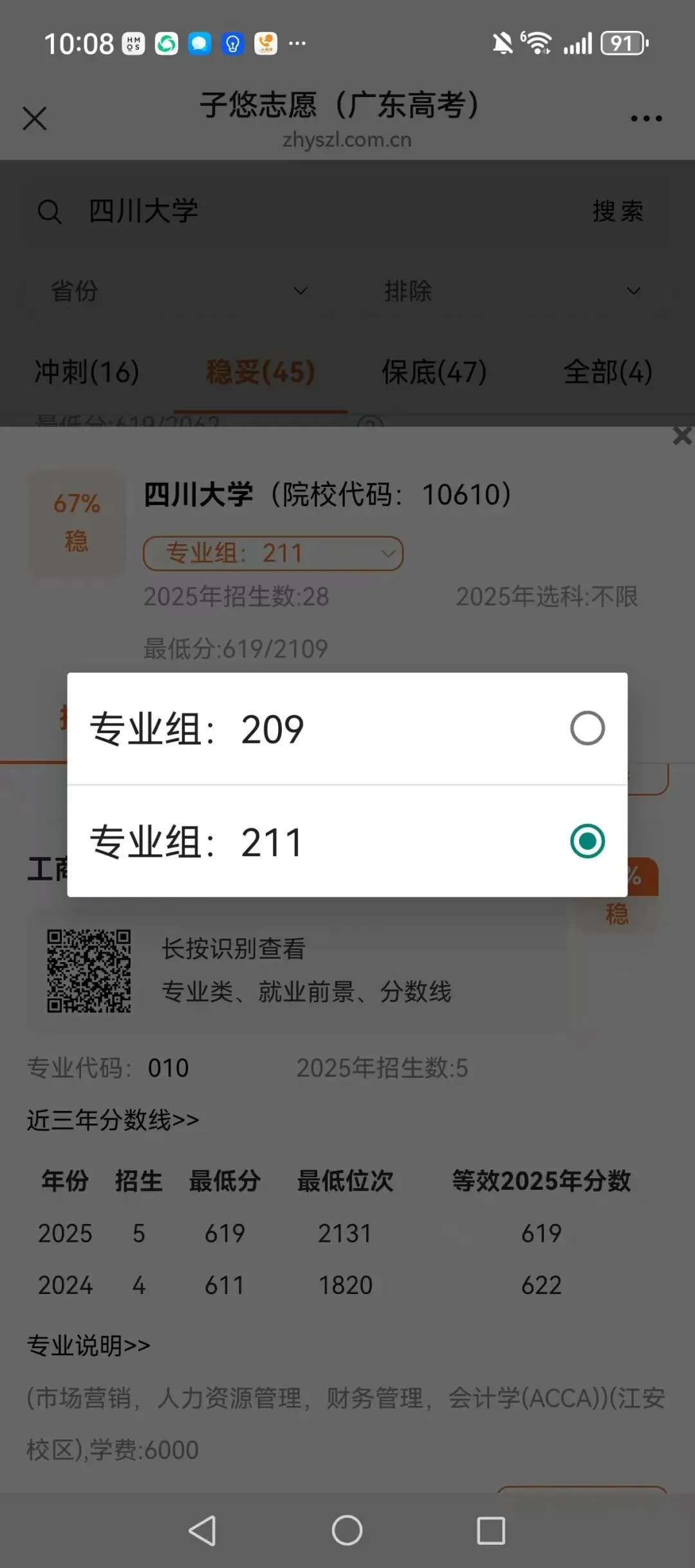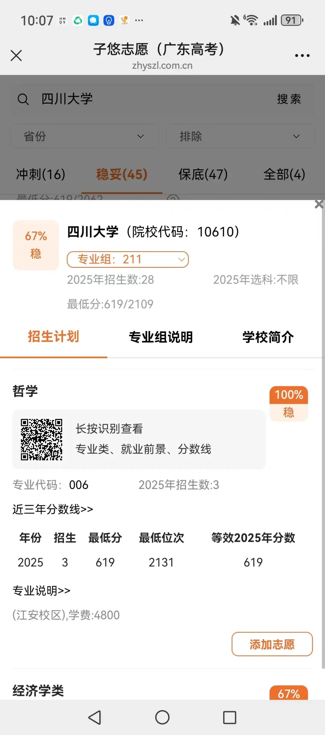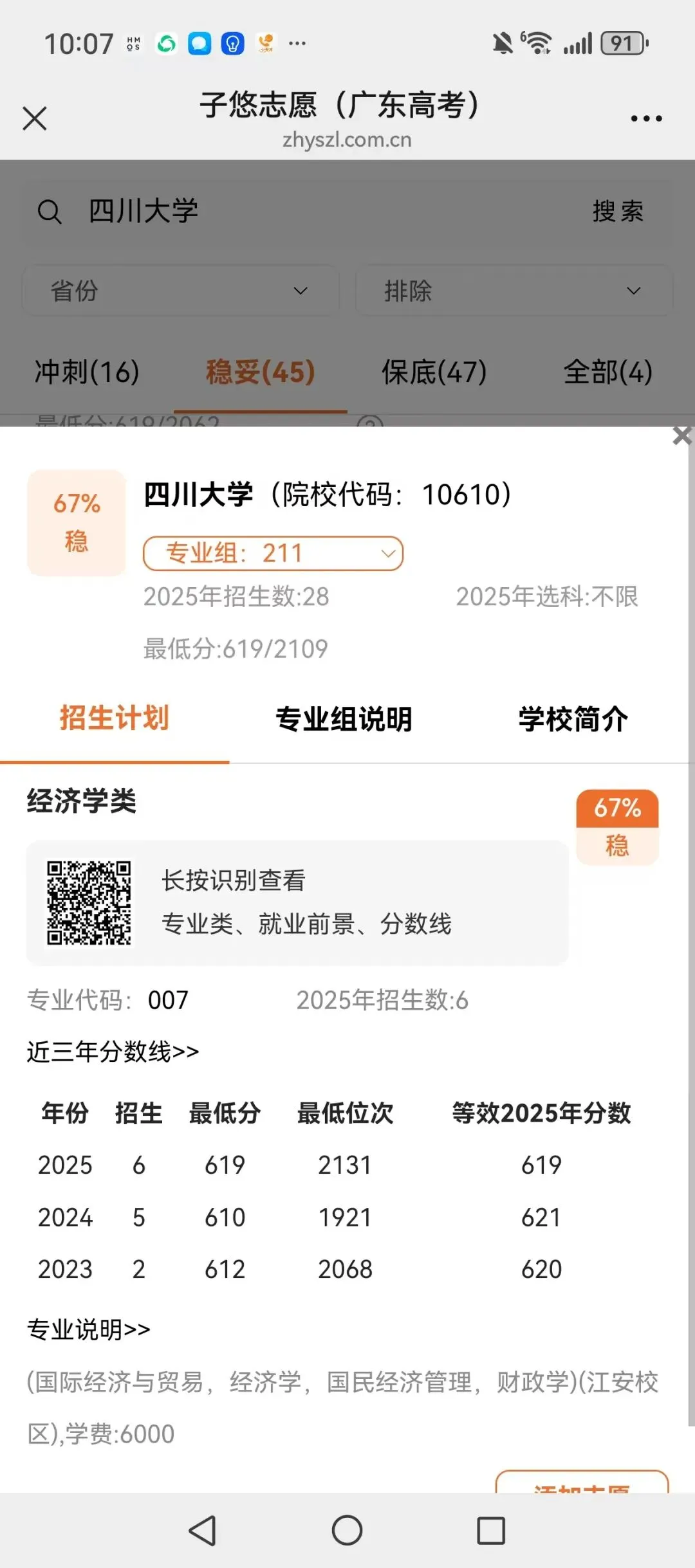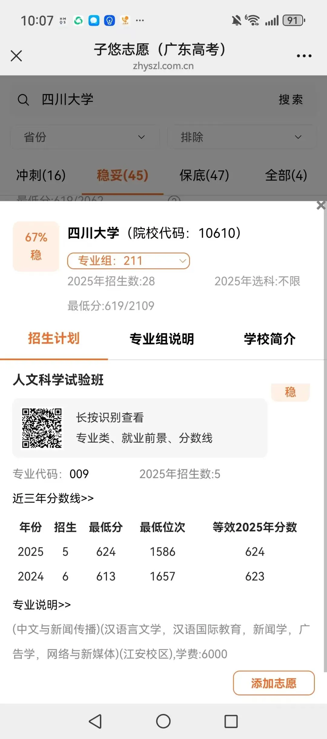 识别左侧二维码,查大学、查专业