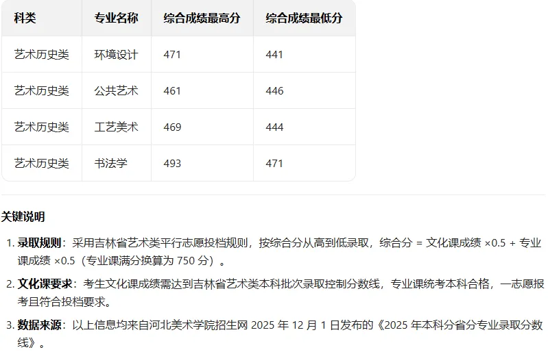 >艺术生文化课丨河北美术学院2025年本科录取分数线(吉林)