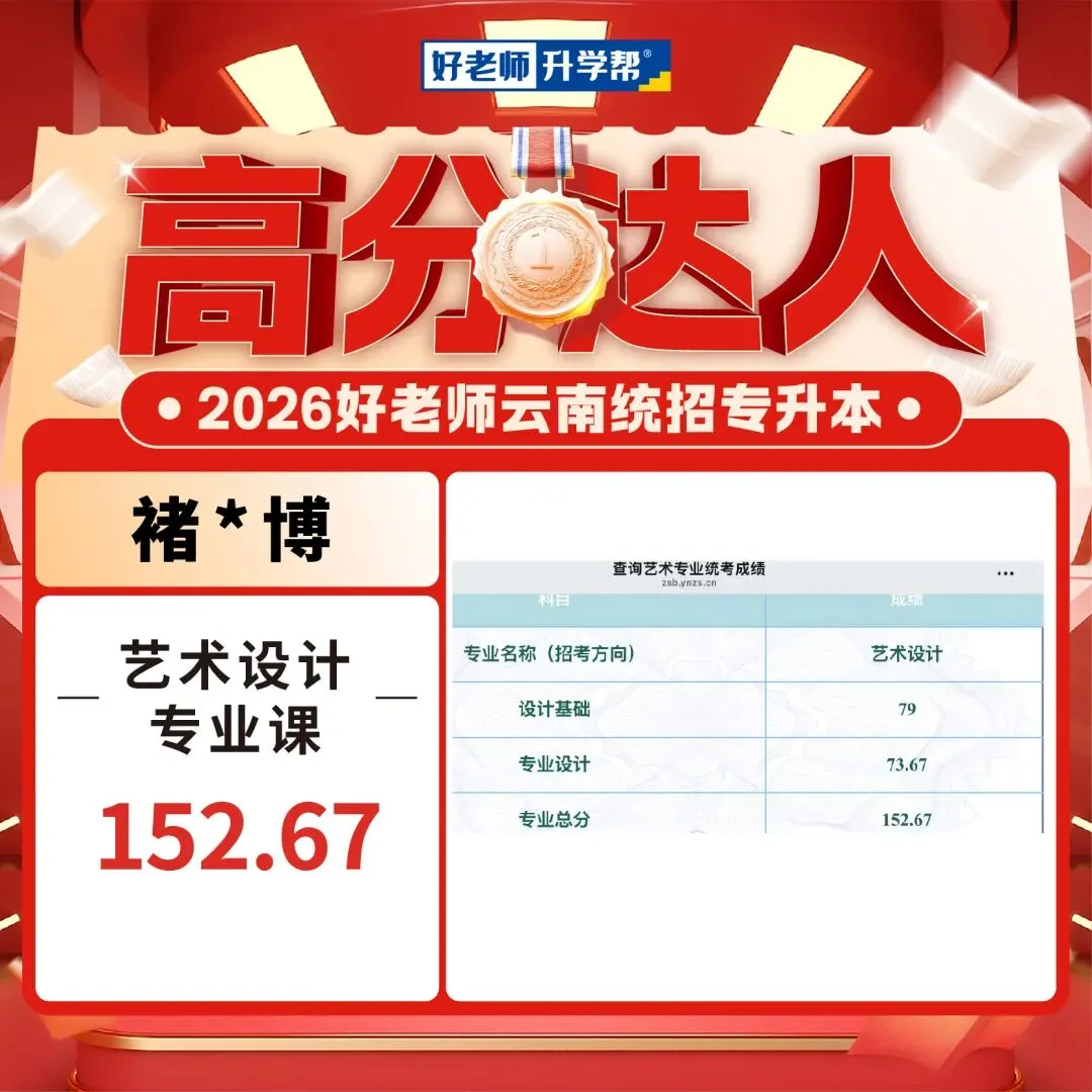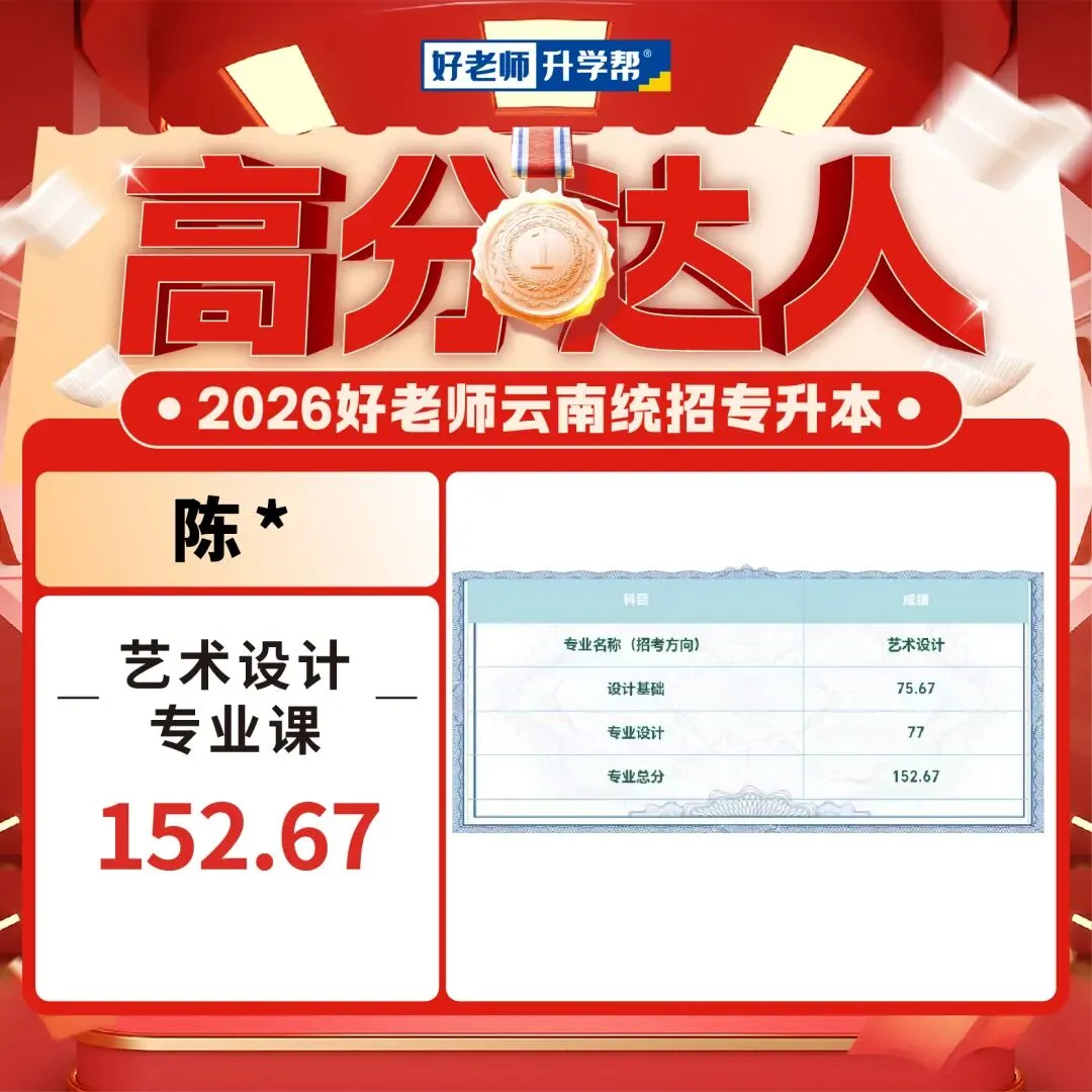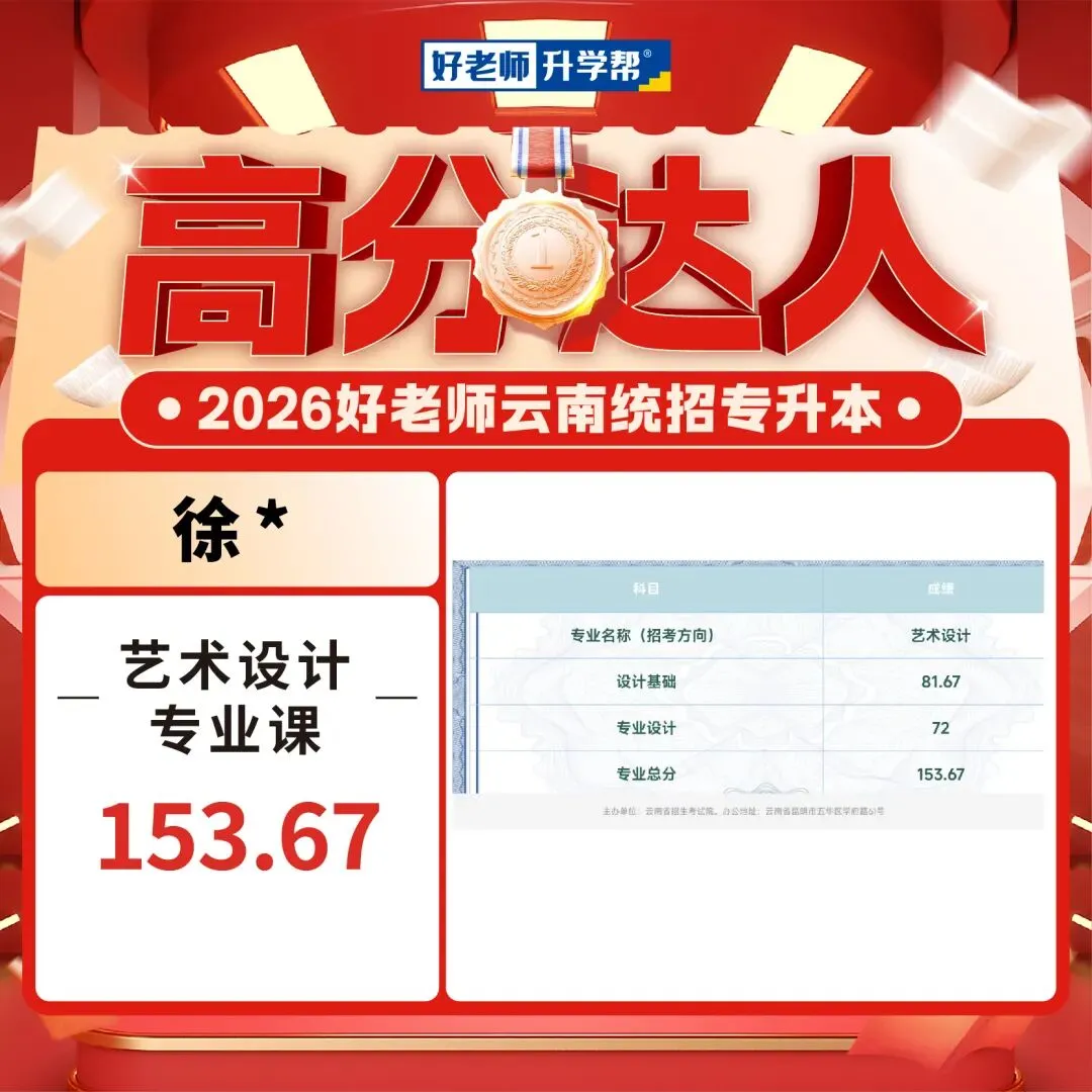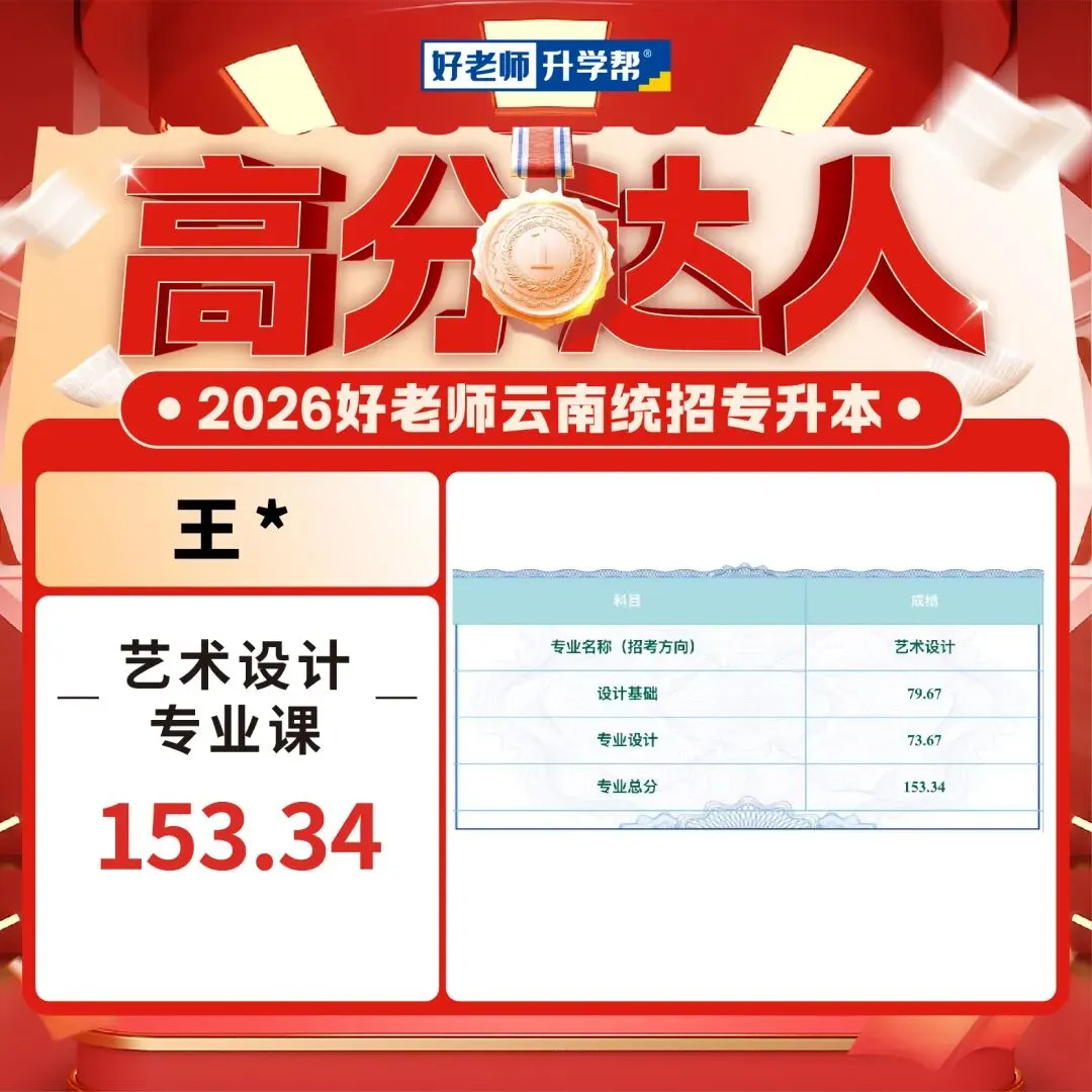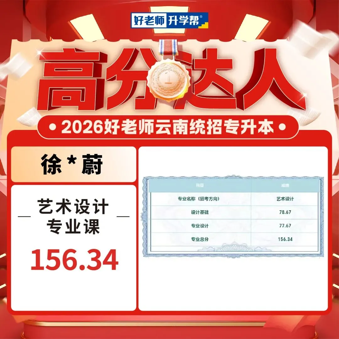 2026年云南专升本艺术专业统考已经可以查成绩了,我们也收到了一大波好老师学员传来高分喜讯,你们用成绩见证实力,用努力创造奇迹!这是属于你们的高光时刻!还没查成绩的同学速速集合,接住这份 “高分欧气”,期待你们的好消息刷屏!