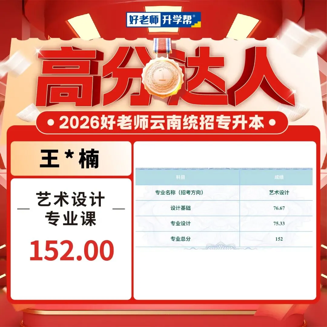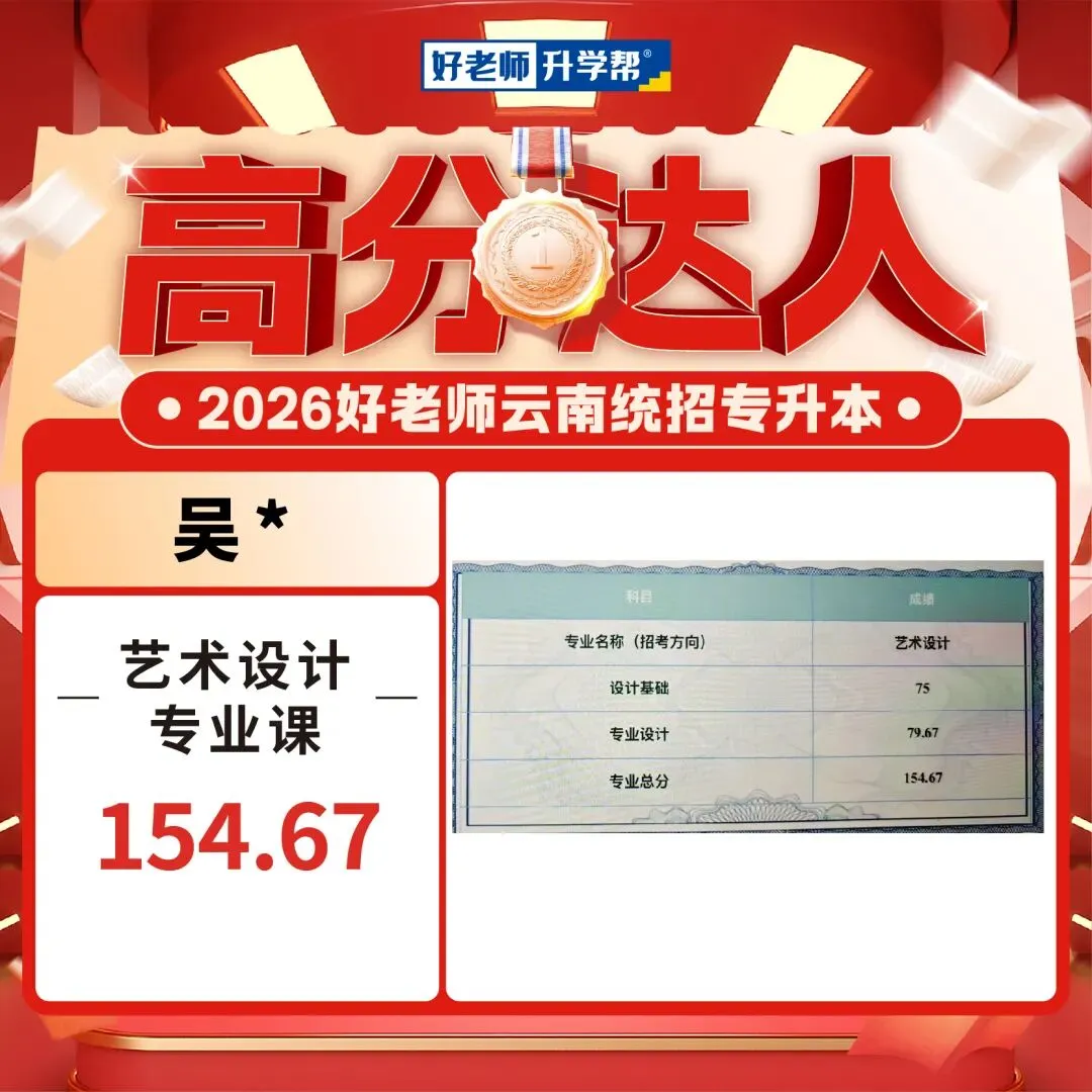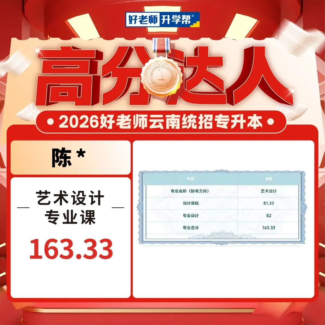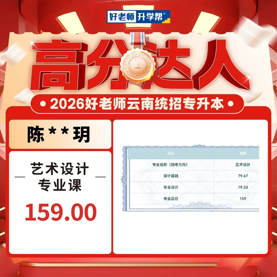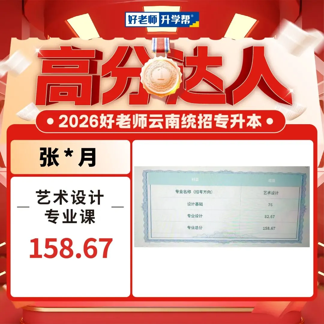 2026年云南专升本艺术专业统考已经可以查成绩了,我们也收到了一大波好老师学员传来高分喜讯,你们用成绩见证实力,用努力创造奇迹!这是属于你们的高光时刻!还没查成绩的同学速速集合,接住这份 “高分欧气”,期待你们的好消息刷屏!
