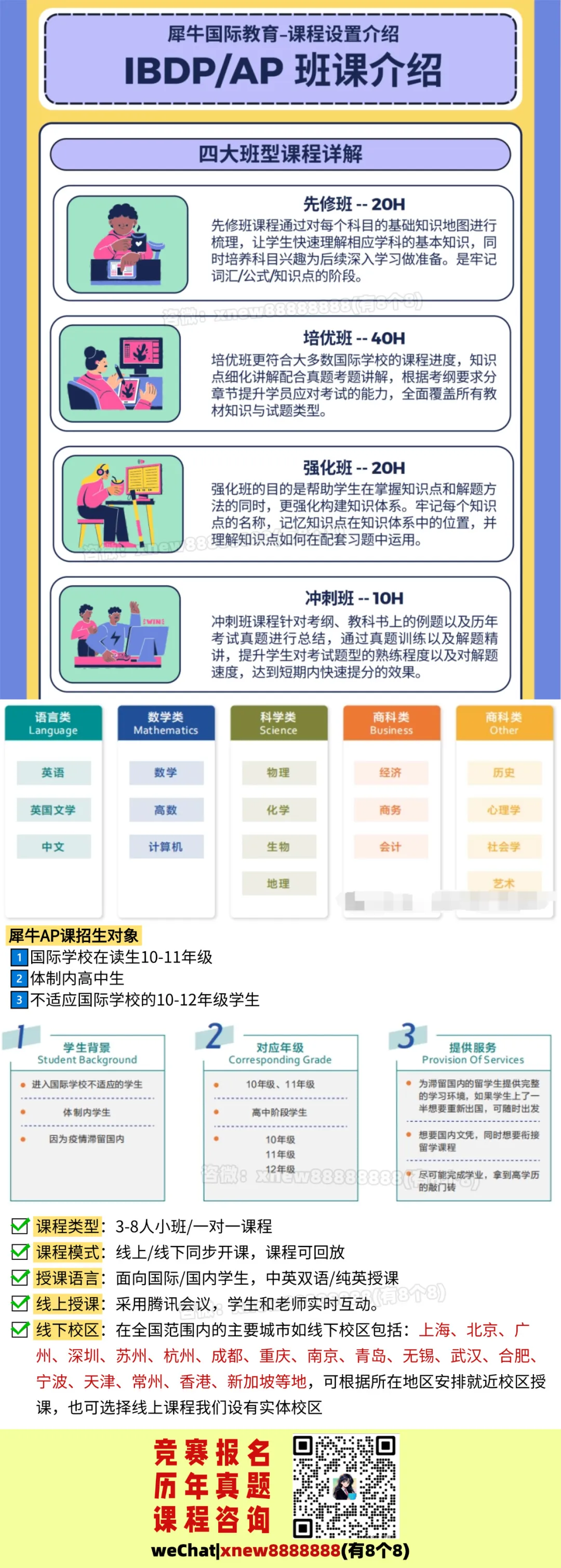 这类AP科目知识点集中、记忆为主,不用复杂计算,适合零基础或想保底的同学。