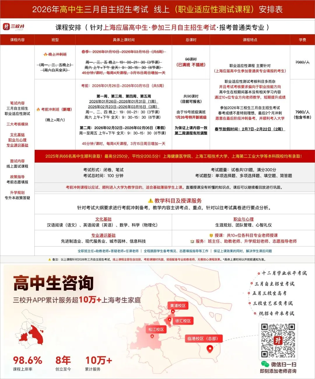 ❤️ 三校升APP,首款上海三校生自己的一站式线上平台,专注上海三校生教育及发展。更快、更全、更准确的考试资讯,让考生在升学途中不走弯路!8年来,已服务数10万考生升学备考。职业教育的路依旧很长,但我们会坚守:“不忘初心,砥砺前行”的价值观。